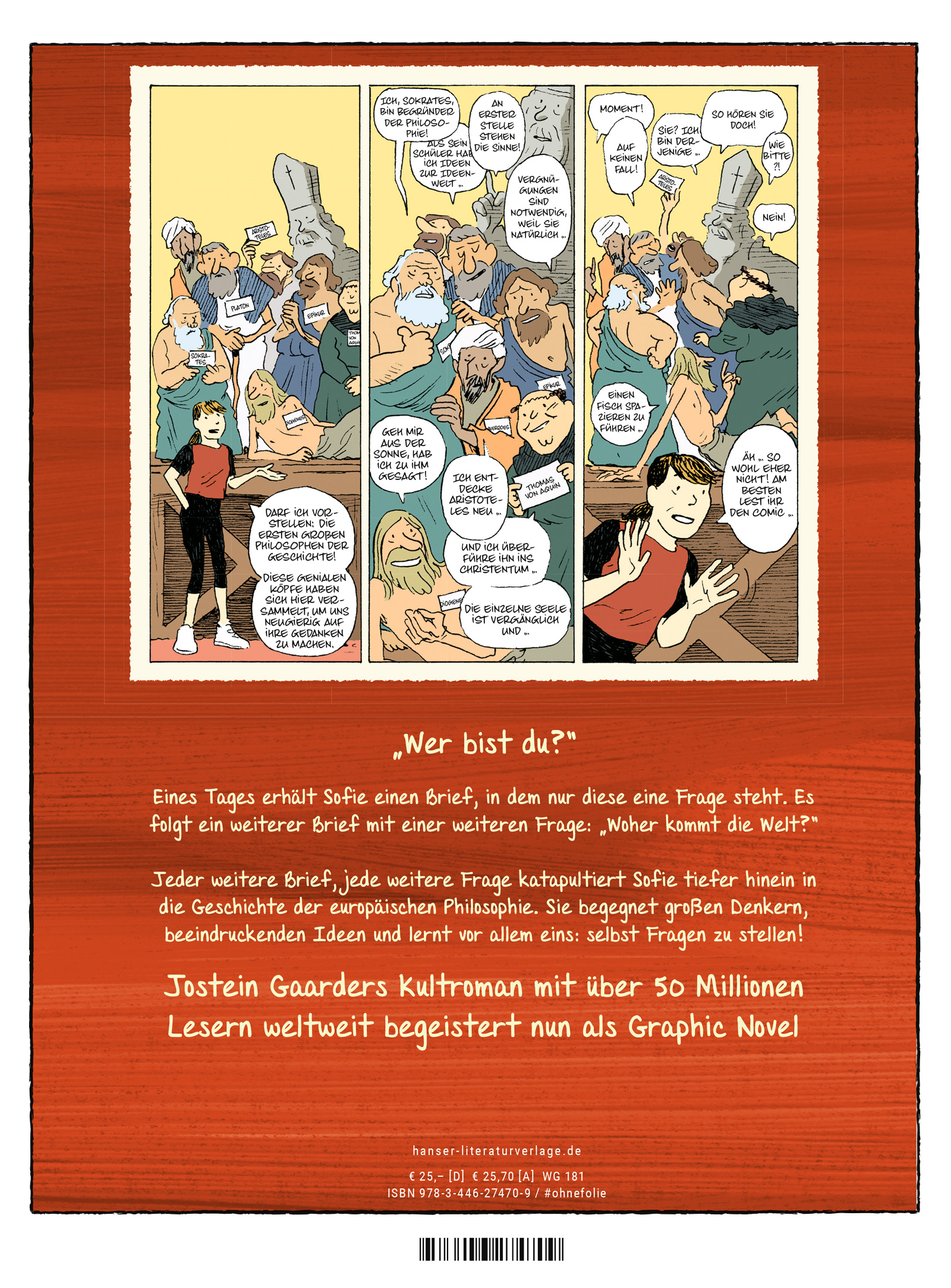 Eines Tages erhält Sofie einen Brief, in dem nur eine Frage steht: "Wer bist du?" Es folgen weitere Briefe, von wem sie stammen, bleibt ein Rätsel. Doch sie entführen die junge Frau auf eine Reise durch die Geschichte der Philosophie, in deren Verlauf sie den großen Denkern Europas begegnet: von Sokrates über Hegel bis hin zu Sartre. Jostein Gaarders Roman erscheint nun als Comic, in dem man unmittelbar eintaucht in die Welt der Sofie Amundsen und sich mit ihr die großen Fragen des Lebens stellt. Eine beeindruckende Graphic Novel, die Fans des Kultromans und die nächste Generation gleichermaßen begeistern wird!