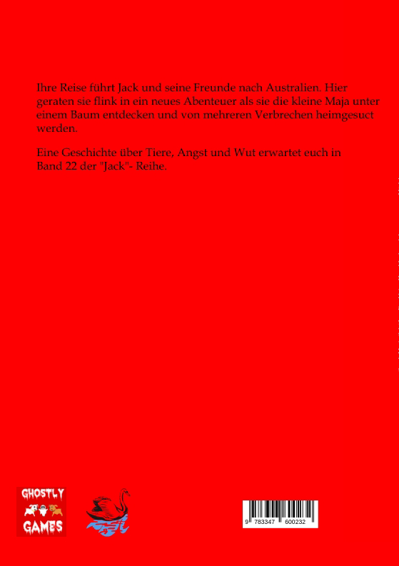 Ihre Reise führt Jack und seine Freunde nach Australien. Hier geraten sie flink in ein neues Abenteuer als sie die kleine Maja unter einem Baum entdecken und von mehreren Verbrechen heimgesucht werden.Eine Geschichte über Tiere, Angst und Wut erwartet euch in Band 22 der "Jack"- Reihe.