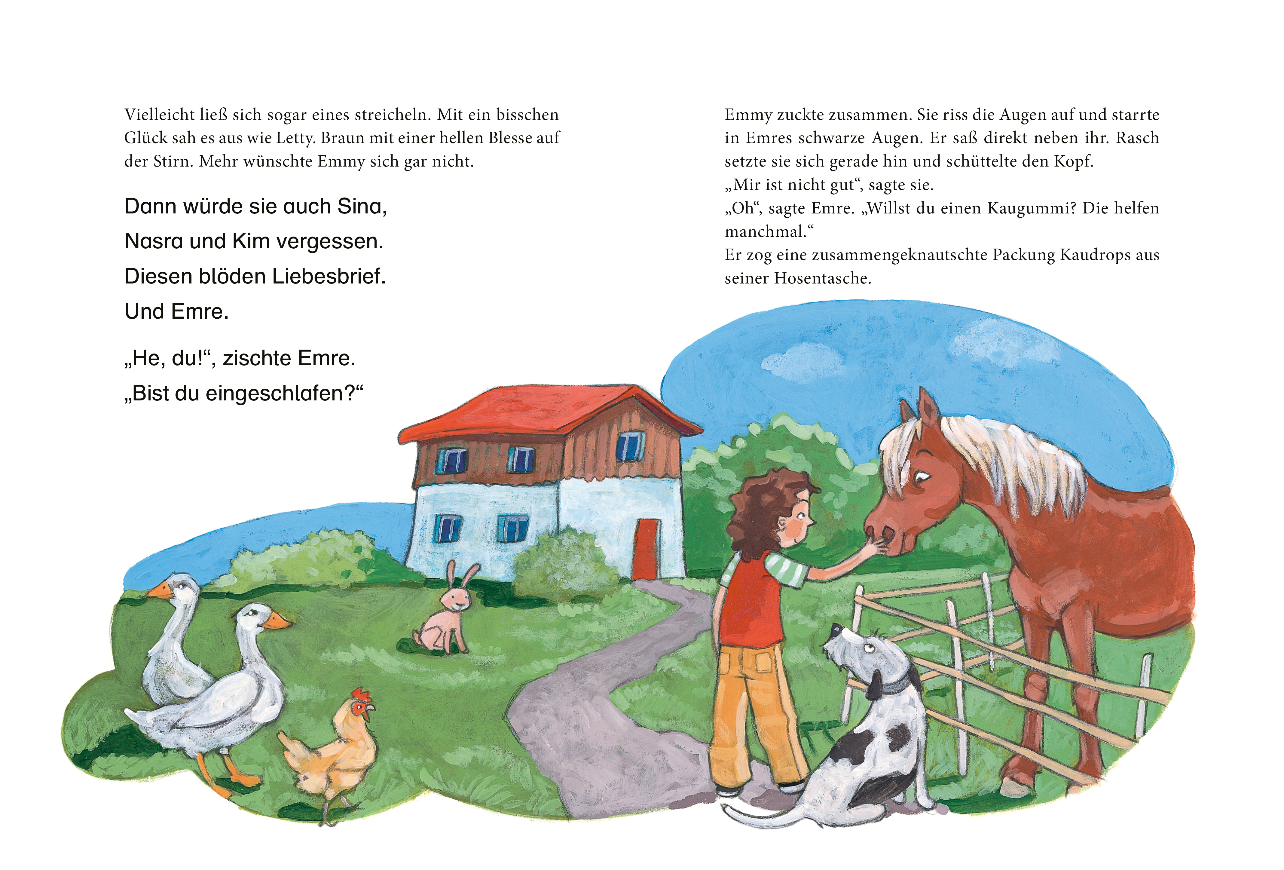 Mit Opas Pony Letty hatte Emmy viel Spaß und ihr vertraute sie alle Sorgen an. Doch jetzt ist das Pony fort, verkauft, und Emmy ist einsam, denn in ihrer Klasse hat sie keine Freunde. Das ändert sich beim Klassenausflug schlagartig: Auf einer Pferdekoppel treiben ein paar Mädchen Schabernack mit den Ponys - und es ist Emmy, die vor den Augen aller mutig das Schlimmste verhindert. Plötzlich sind alle Kinder begeistert von Emmy. Und Emmy? Die stellt fest, dass das eine Pony ihrer Letty ganz verblüffend ähnelt ...Wenn das Lesen für Leseanfänger*innen noch mühsam ist, heißt es in vielen Familien: »Lass uns gemeinsam lesen. Erst ich ein Stück, dann du. Wir wechseln uns ab.« Deswegen ist unsere beliebte Erstleser-Reihe »Erst ich ein Stück, dann du« speziell für das gemeinsame Lesen konzipiert:* Leseabschnitte für die erfahrenen Vorleser*innen und die Leseanfänger*innen wechseln sich ab* längere Passagen für Vorleser*innen in kleiner Schrift* kurze Texte für Leseanfänger*innen in FibelschriftSo macht gemeinsames Lesenlernen Spaß!