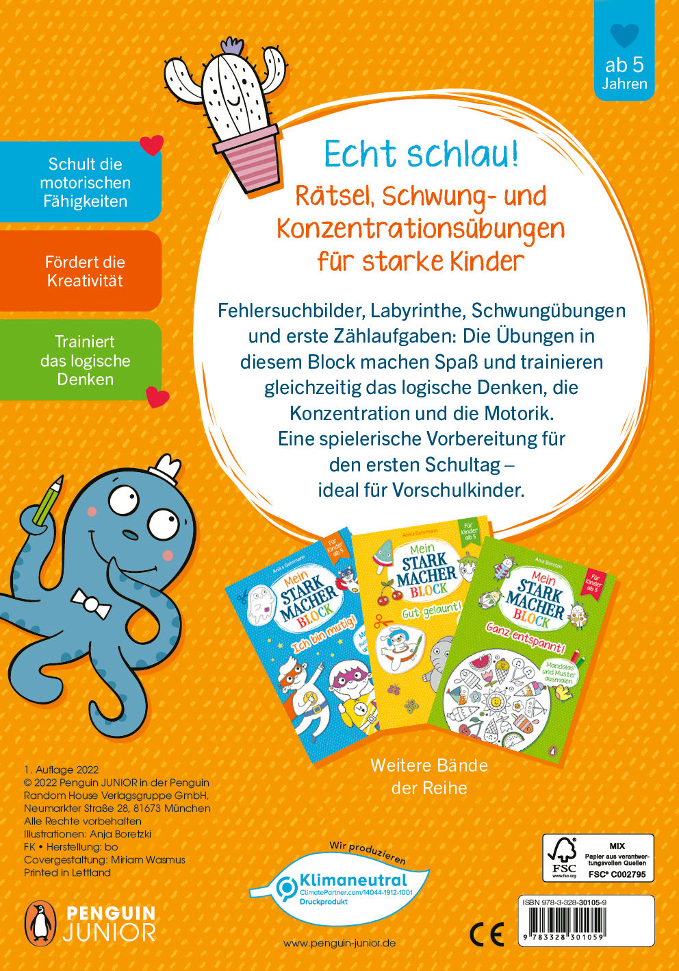 | Schlagworte | 2022 • ab 5 • Activity • Beschäftigung für Kinder • Beschäftigungsspaß • Buch • Bücher • Einschulung • Empowerment • Kinderbeschäftigung • Kinderbuch • Kinderbücher • Kinder fördern • Kindergarten • Kinderrätsel • Kinder stark machen • Kita • Konzentration • Kreativität • Malbuch • Malen • Neuerscheinung • Rätselblock • rätselblock ab 5 jahre • Rätselbuch Kinder • Rätseln • Rätselvergnügen mit Lösungen • Schultüte • Selbstwert • Serien • Spielerisches Lernen • Spiel und Spaß • Vorschule • zum Mitmachen |