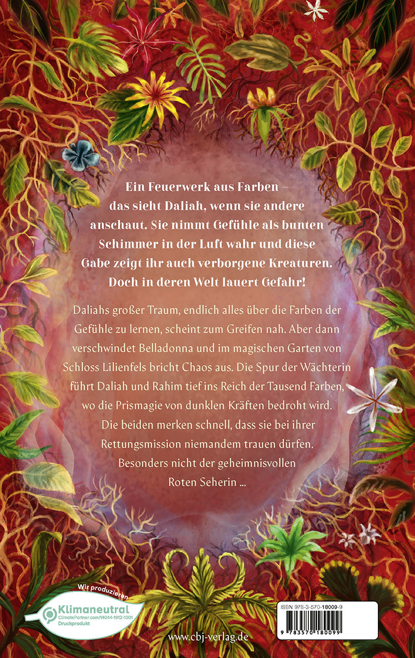 Daliahs großer Traum, endlich alles über die Farben der Gefühle zu lernen, scheint zum Greifen nah. Aber dann verschwindet Belladonna und im magischen Garten von Schloss Lilienfels bricht Chaos aus. Die Spur der Wächterin führt Daliah und Rahim tiefer ins Reich der Tausend Farben, wo die Prismagie von dunklen Kräften bedroht wird. Die beiden merken schnell, dass sie bei ihrer Rettungsmission niemandem trauen dürfen. Besonders nicht der geheimnisvollen Roten Seherin ...