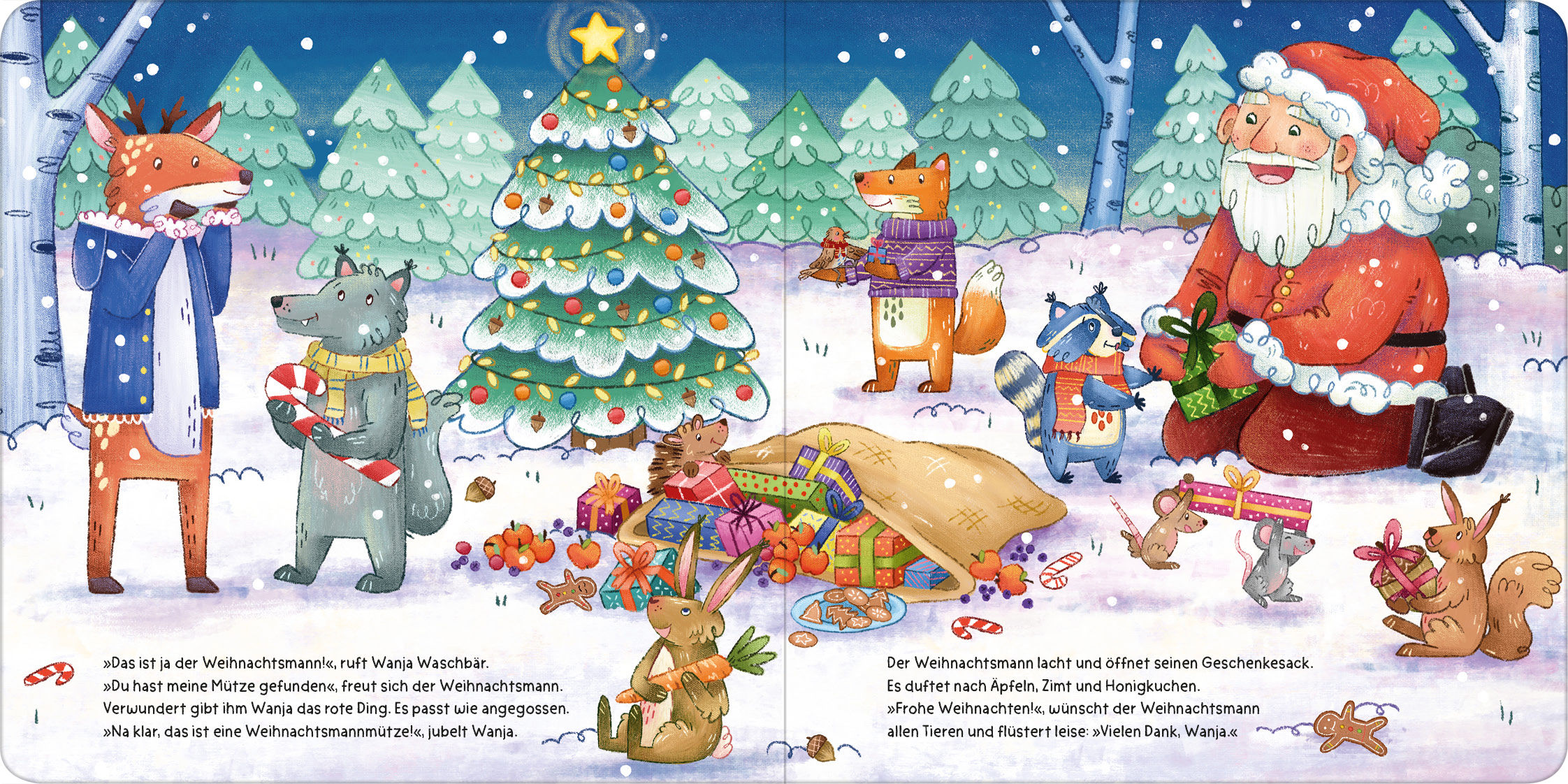 Was ist das für ein seltsames, rotes Ding, das Wanda Waschbär da im Winterwald entdeckt? Und wohin führen nur all die Spuren im glitzernden Schnee? Natürlich zu den verschiedenen Waldtieren! Doch können die Tiere Wanda helfen, das Rätsel um seinen geheimnisvollen Fund zu lösen?