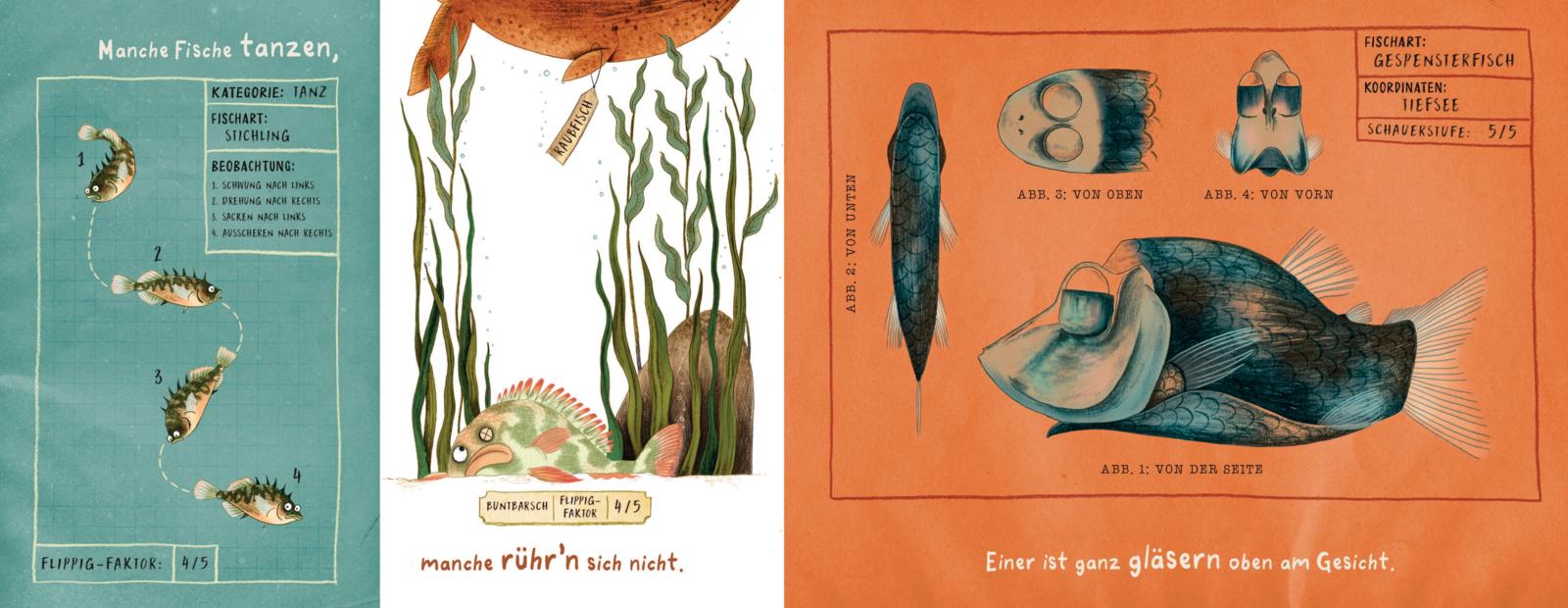 Deutsche übertragen. Man begegnet auf jeder Doppelseite unterschiedlichen Fischen, die durchs Bild gleiten, blinken, tanzen. Die Sprache ist mal sachlich-informativ, dann wieder verspielt und humorvoll. Ein ungewöhnliches Bildersachbuch, das Information, Humor und die Welt der Fische gekonnt in Szene setzt."