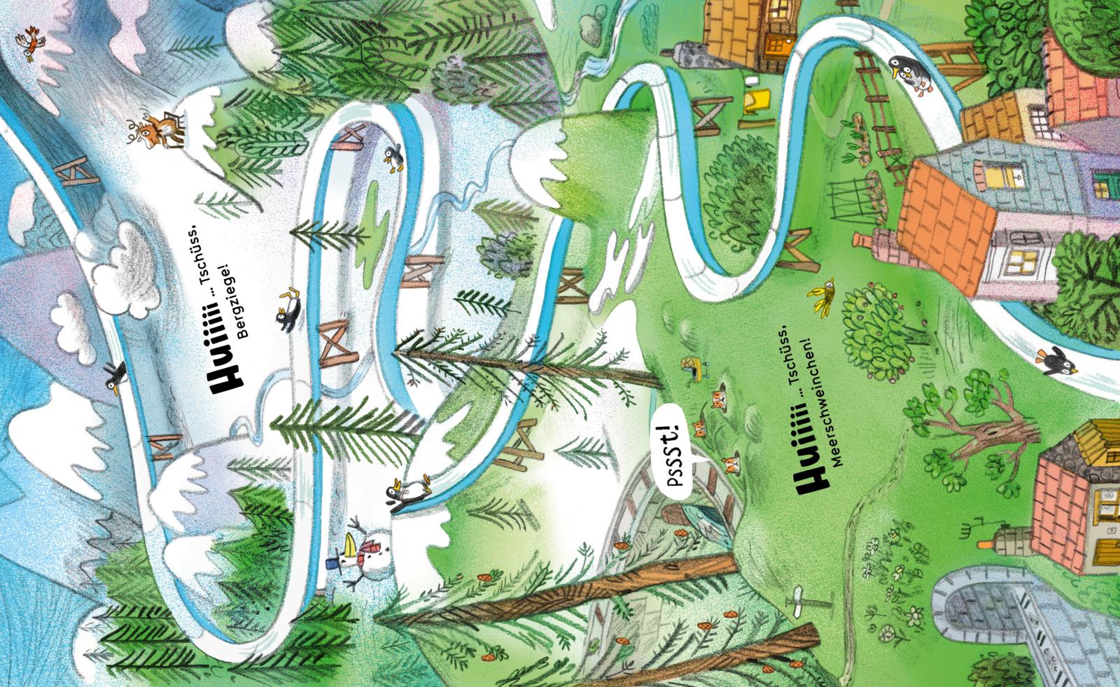 | Schlagworte | Abenteuer • Bilderbuch • Bus • Fahrzeuge • großer Spaß • Kindertraum • lustiges Bilderbuch • Meerschweinchen • niedlich • Pinguine • Pinguinfamilie • Reise • Riesenrutsche • Rutschbahn • Rutsche • Seilbahn • Spaß • süße Tiere • Tiere • Vorlesen • witzig • Zug |