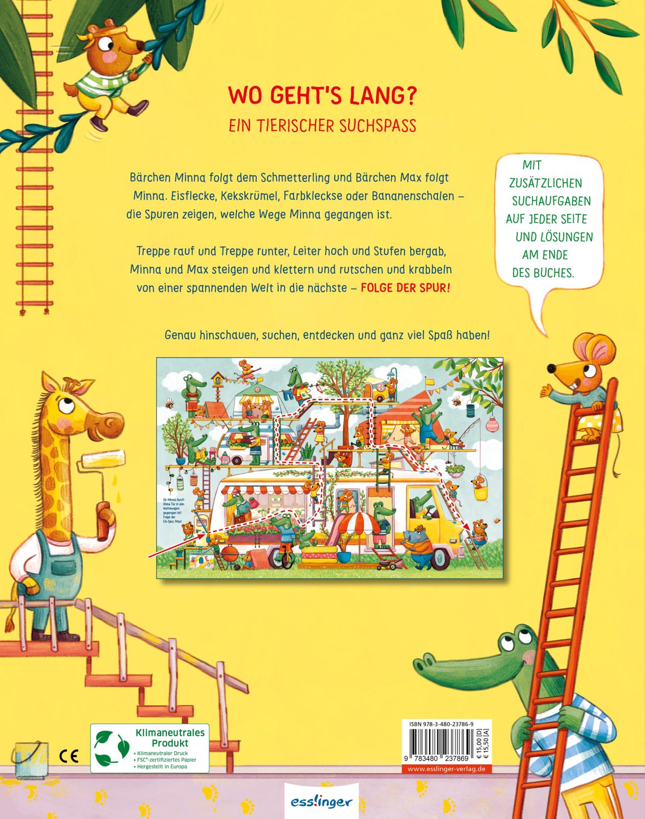 "Ein tolles Buch, das durch sein spannendes Suchspiel für zusätzlichen Spaß beim gemeinsamen Lesen sorgt. Auch nach mehrmaligem Betrachten werden die farbenfrohen Seiten nicht langweilig und laden immer wieder zum Verfolgen der Spur über Treppen, Leitern oder auch Brücken ein!" Kathrin Walther Blog "Kinderbuch-Couch" 20221025