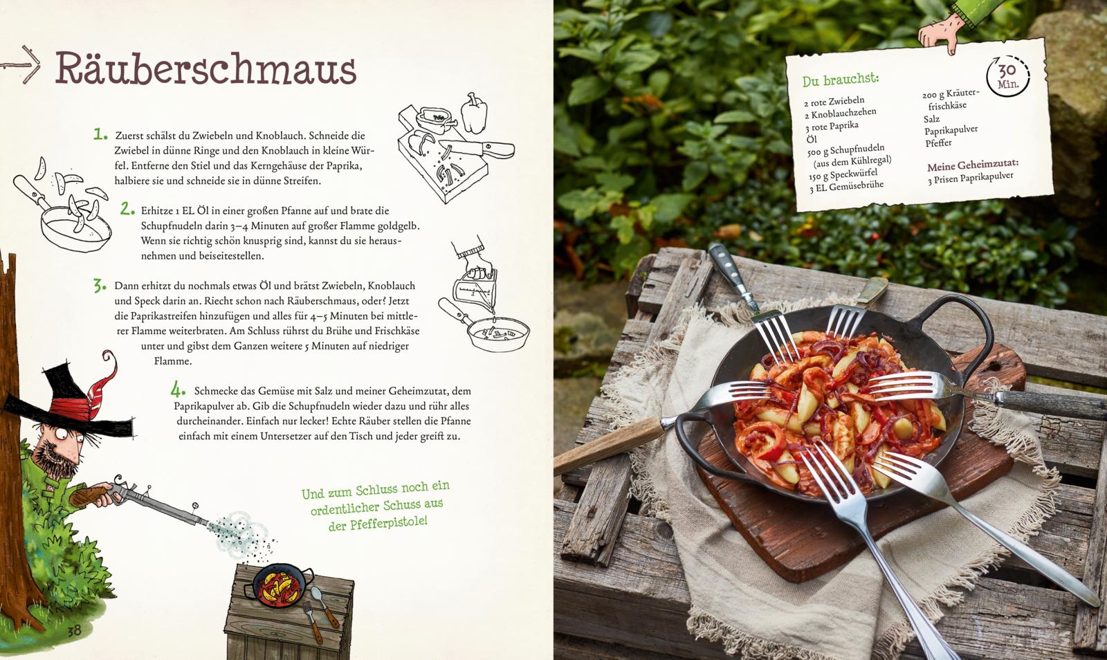 Deftiger Räuberschmaus für zu Hause oder am Lagerfreuer, köstliches Gebäck wie von der Großmutter, leckere Snacks für ein Picknick im Wald und obendrein die besten Rezepte für eine rundum gelungene Räuber-Party - dieses Kochbuch hat alles, was kleine Räuber glücklich macht!