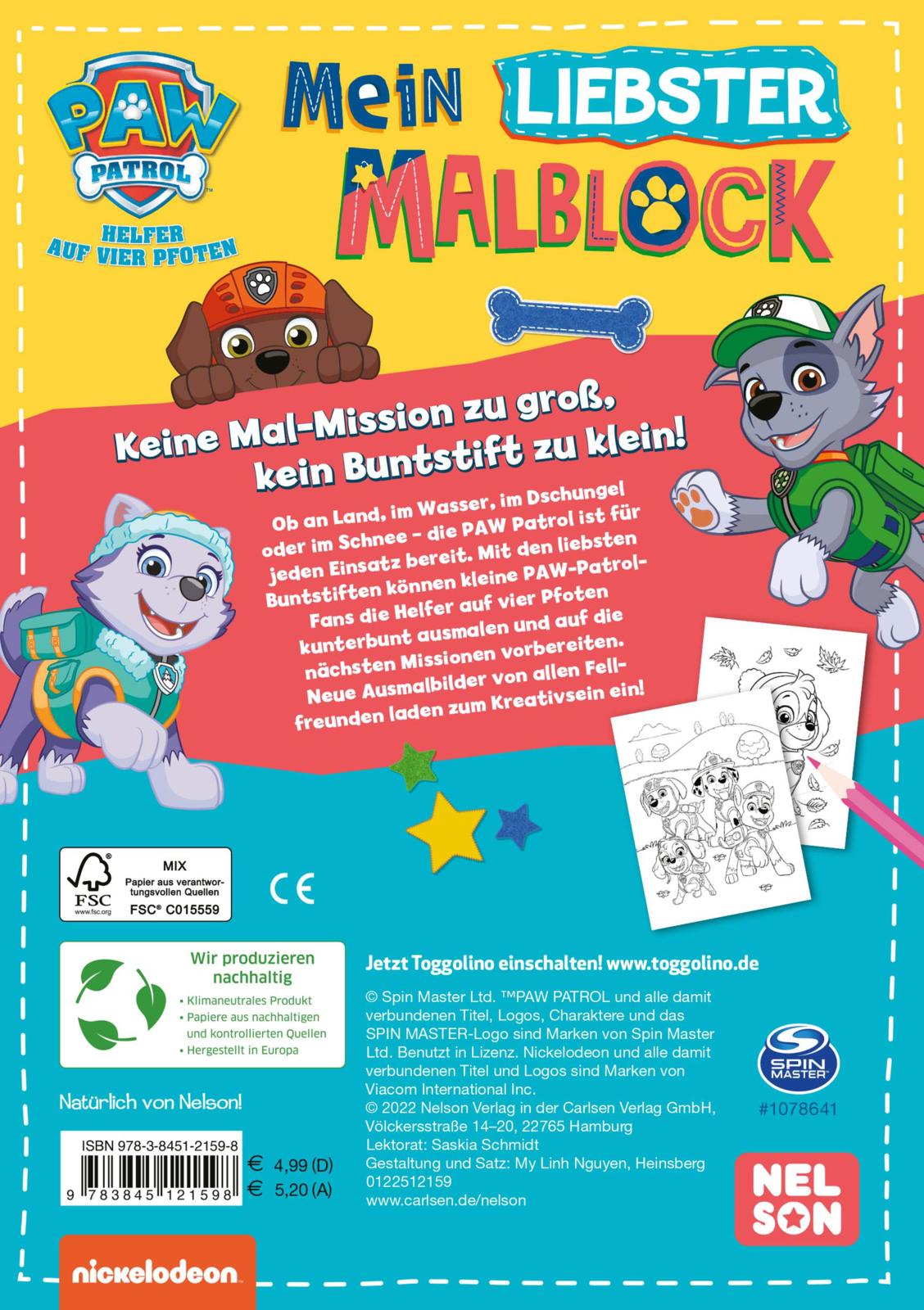 PAW Patrol Kindergartenheft: Mein liebster Malblock