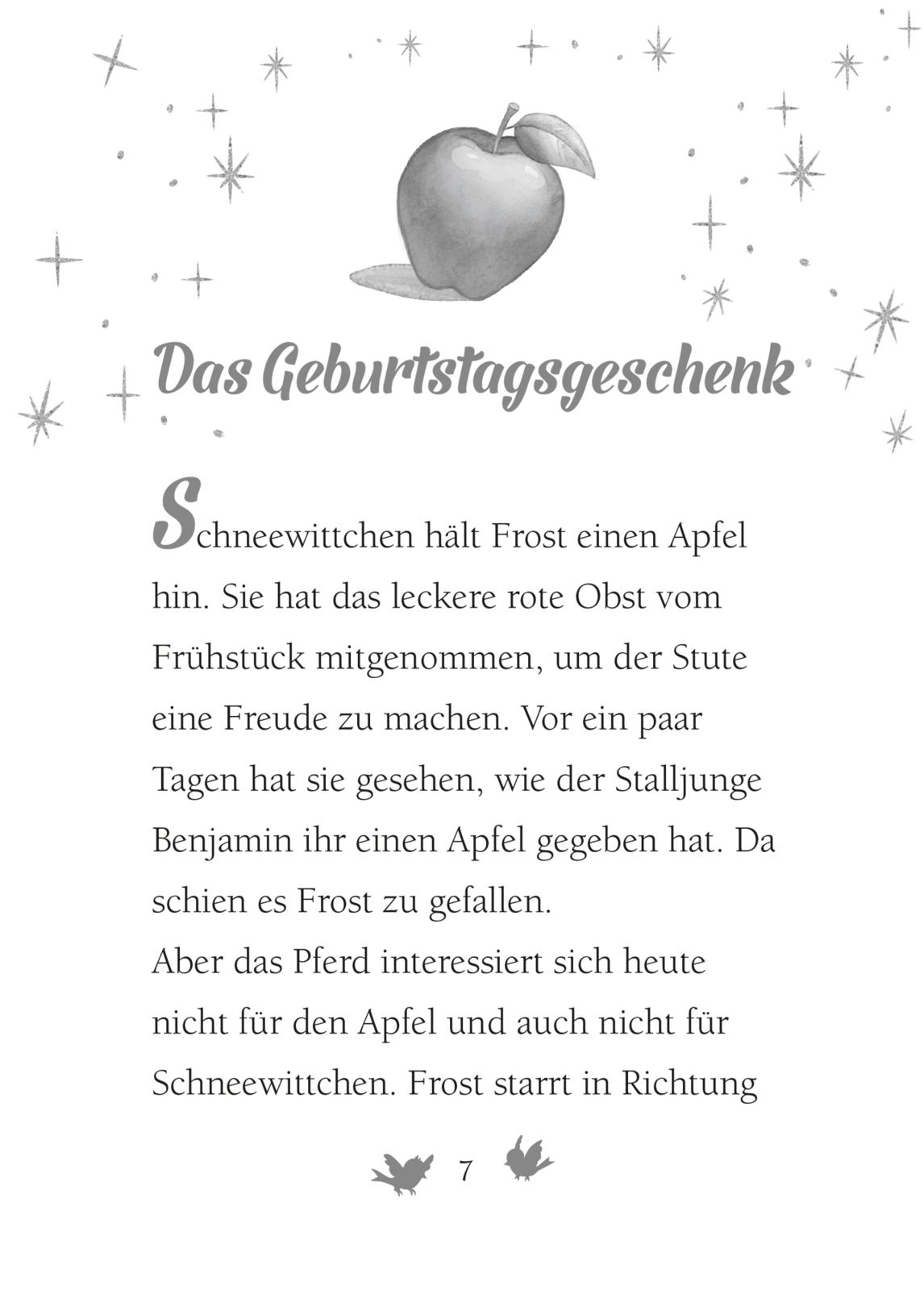 Zu ihrem Geburtstag darf sich Schneewittchen ein Pferd aussuchen. Sie wünscht sich den verletzten Hengst, den sie im Wald gefunden hat, um ihn zu retten. Doch der Hengst ist ganz schön stur. Ständig wirft er seine Reiter ab und nimmt Reißaus. Wird Schneewittchen es schaffen ihr neues Pferd zu verstehen?