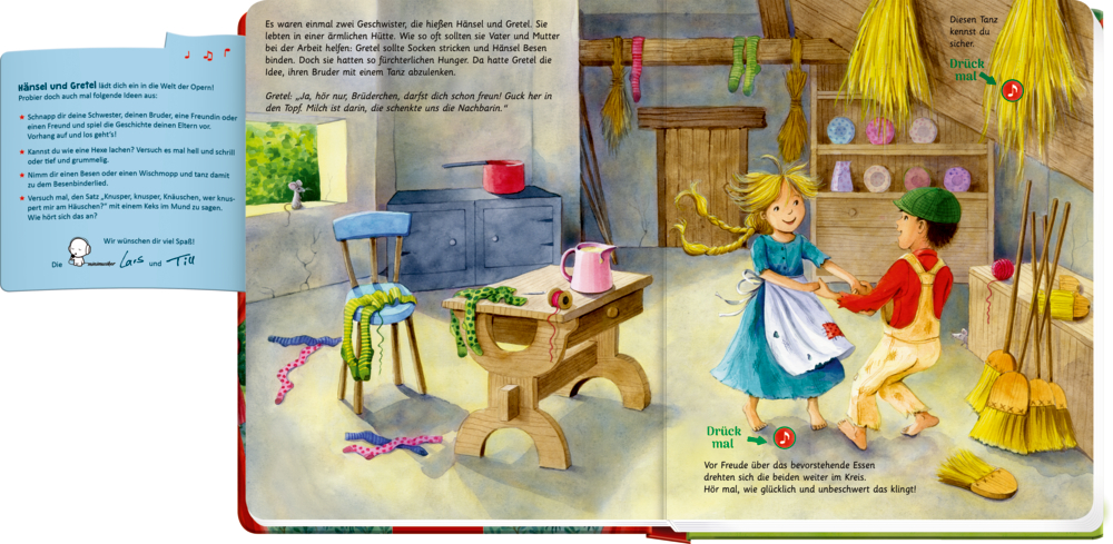 Mit der altersgerechten Nacherzählung der Geschichte, leicht verständlichen Zitaten aus dem Original-Libretto und atmosphärischen Illustrationen können die jungen Leser den einzigartigen Zauber des bekannten Märchens miterleben. Die hervorragenden Hörbeispiele vermitteln den volksliedhaften, zeitlosen Charakter der Musik von Engelbert Humperdinck und lassen die Zuhörer in die Welt von Hänsel und Gretel eintauchen.
