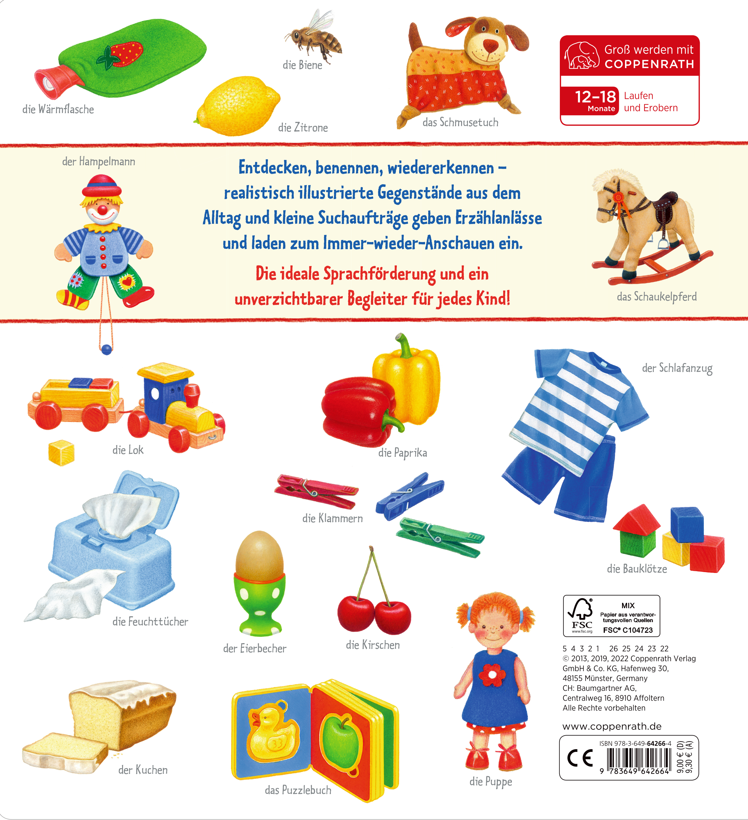 Entdecken, benennen, wiedererkennen - realistisch illustrierte Gegenstände aus dem Alltag und kleine Suchaufträge geben Erzählanlässe und laden zum Immer-wieder-Anschauen ein. Die ideale Sprachförderung und ein unverzichtbarer Begleiter für jedes Kind!