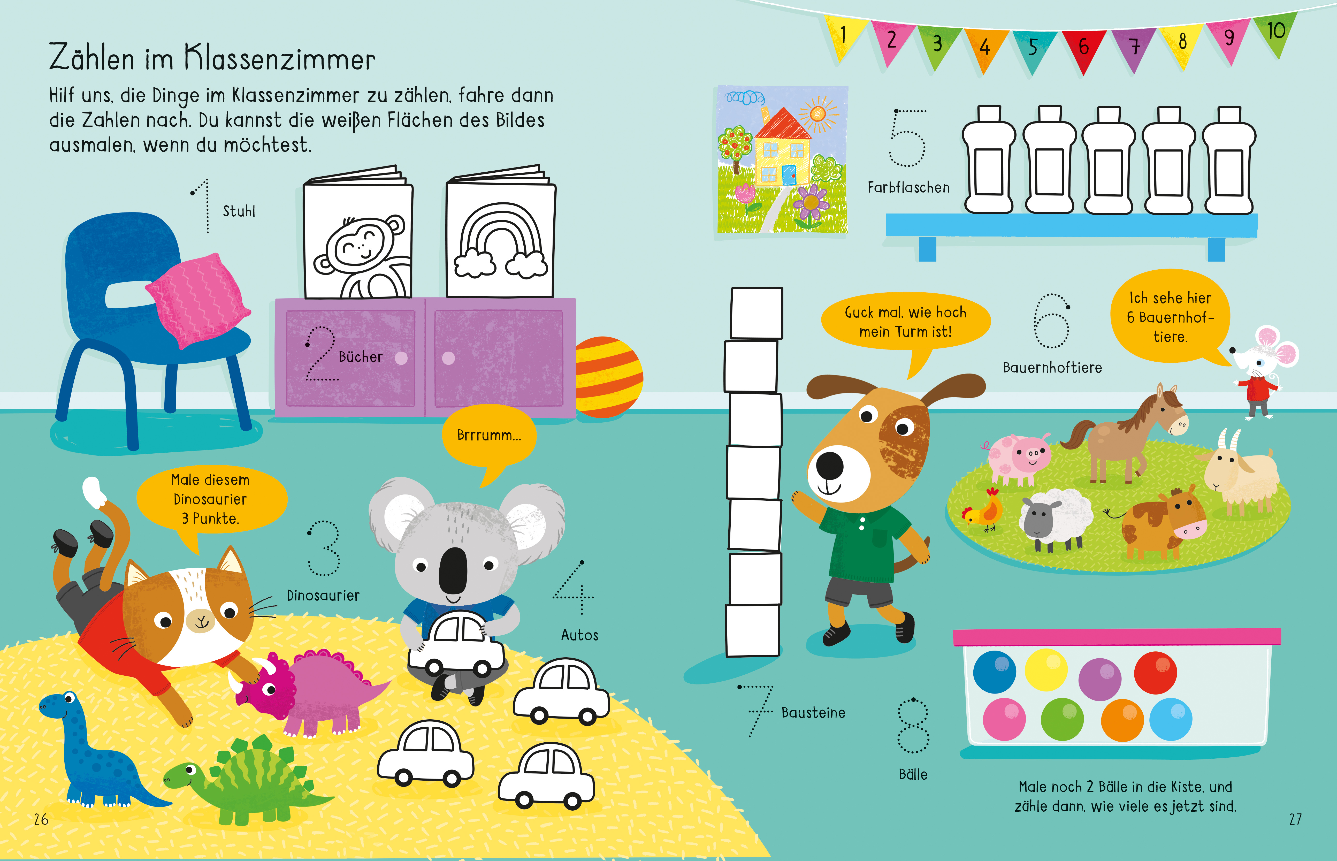 Dieses Mitmachbuch bereitet auf die Schule vor - lerne Farben, Formen, Buchstaben, Zahlen u. v. m.