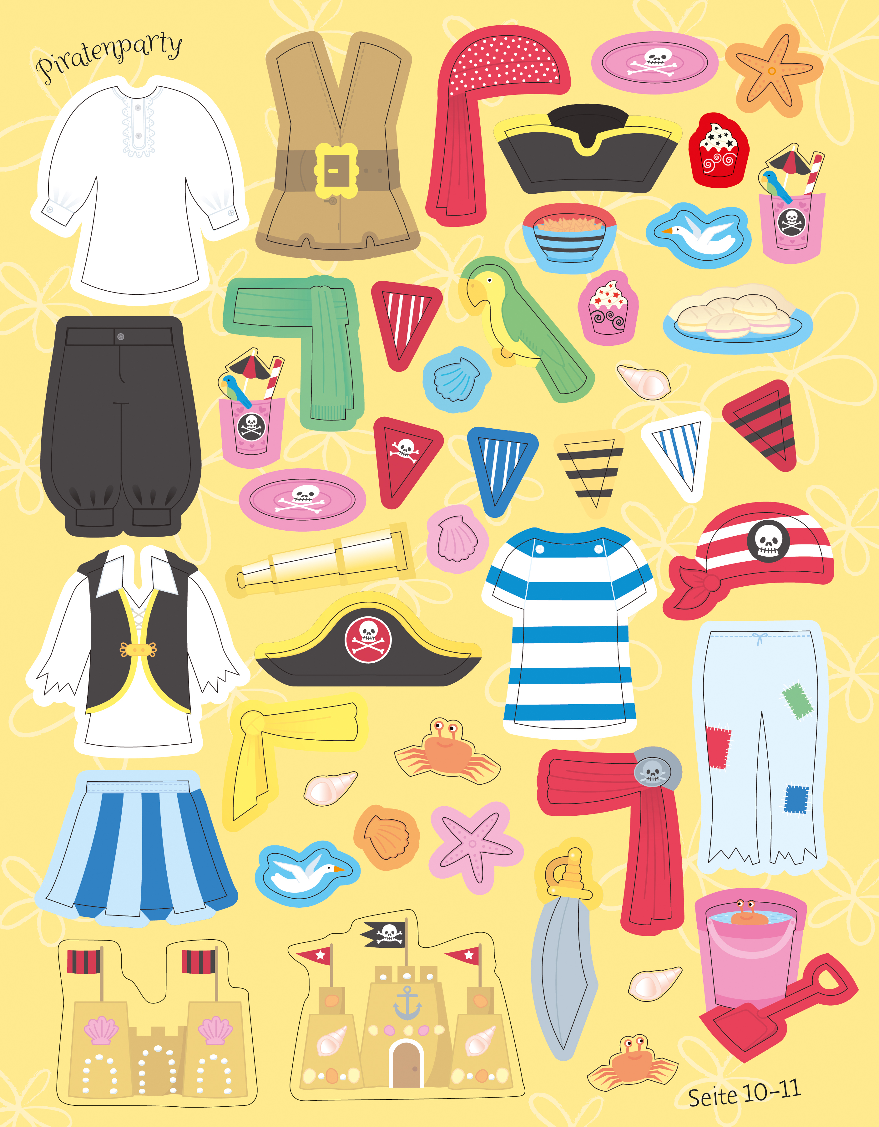 Eine Piratenparty am Strand, ein Picknick im Park oder eine Halloweenfete - es gibt ja so viele Gründe, um zu feiern! Hilf beim Anziehen der Partygäste, indem du für jede Party die passende Kleidung auswählst. Unter den 350 Anzieh-Stickern ist bestimmt das Richtige dabei!