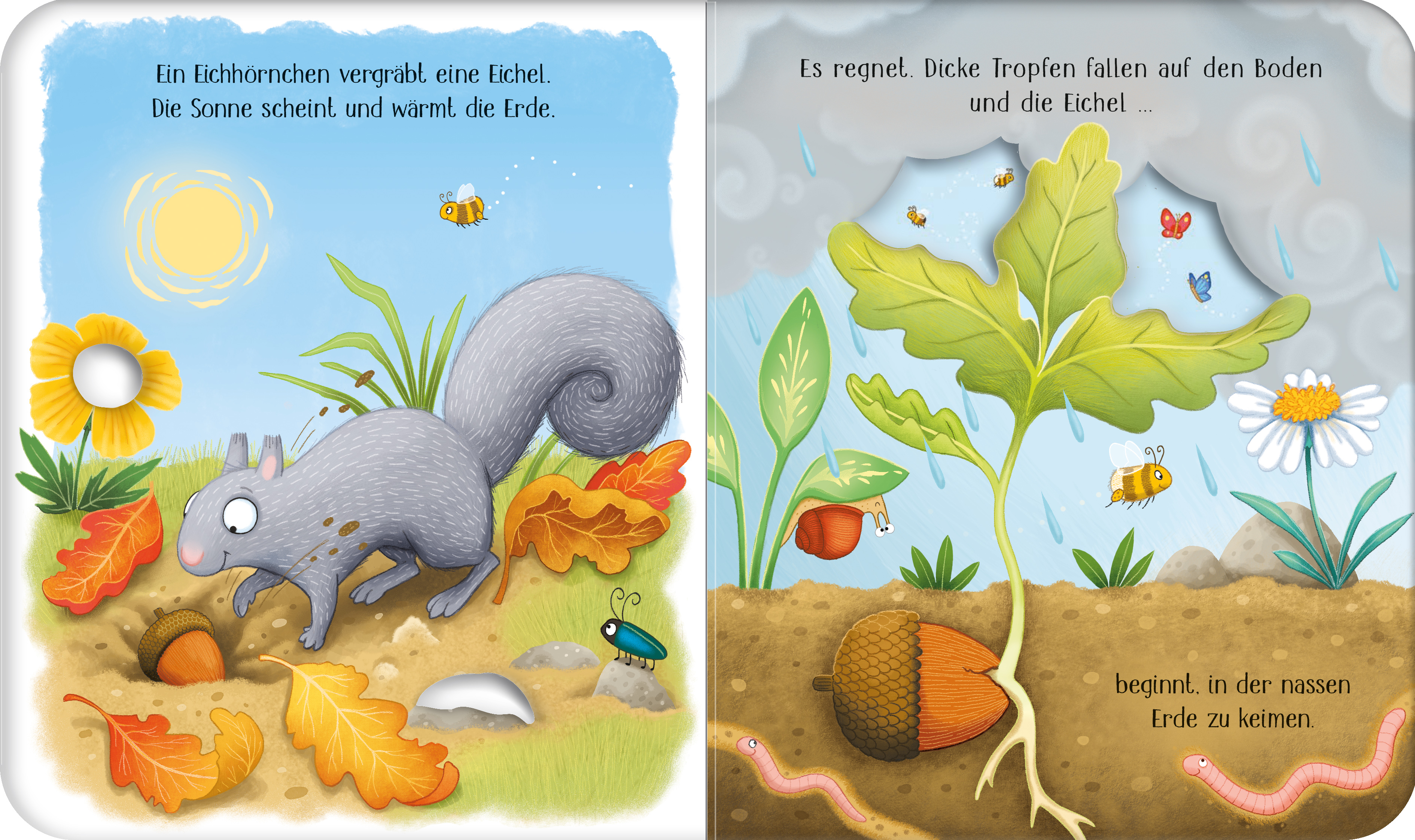 Jeder fängt mal klein an! Gerade ist eine Eichel vom Baum gefallen. Sei dabei, wenn aus ihr ein kleiner Keim sprießt, der sich schließlich zu einer stattlichen Eiche entwickelt. Mit vielen Gucklöchern und detailreichen Illustrationen.