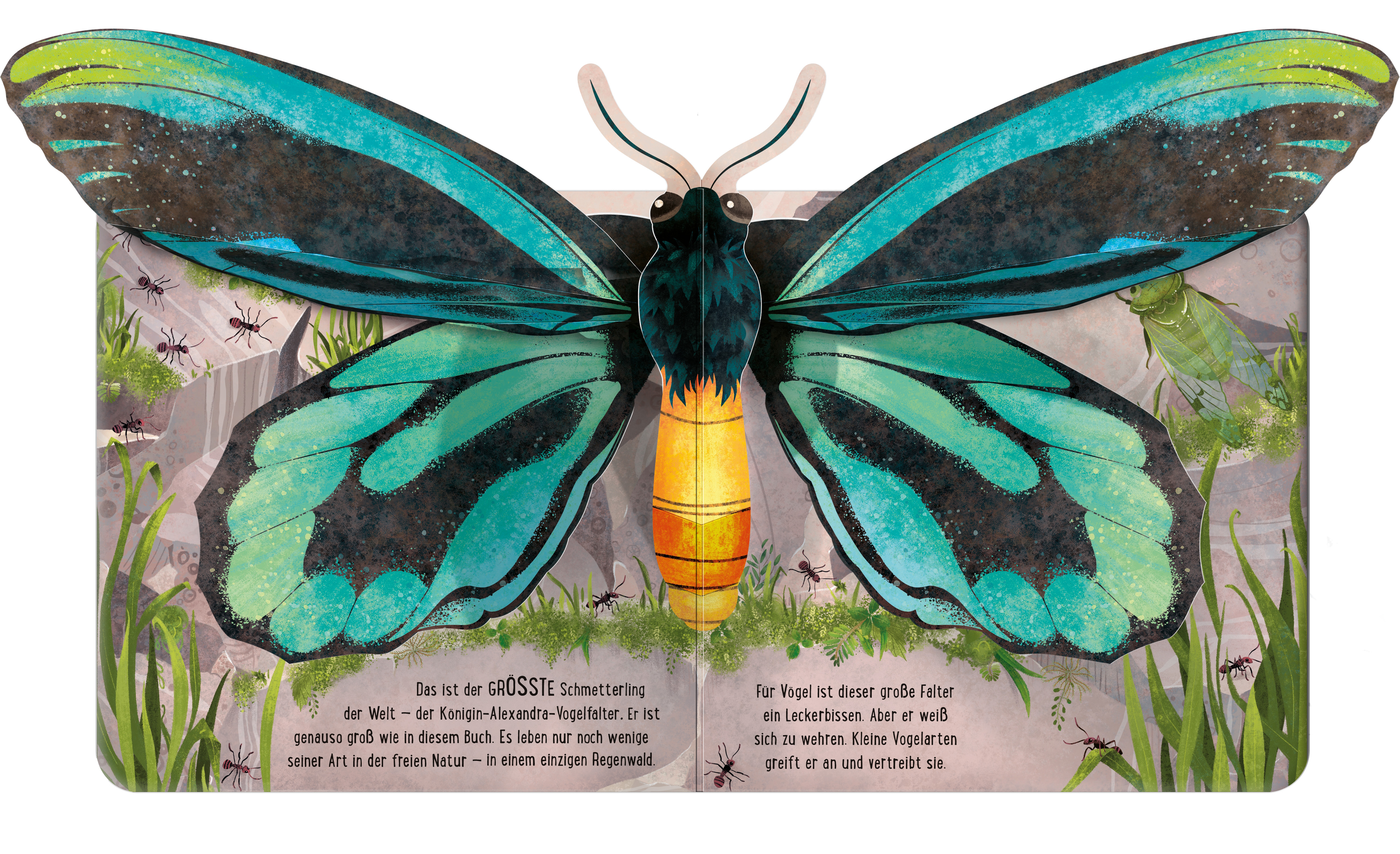 Von orange-schwarzer und schillernd blauer Farbenpracht bis zum riesigen Königin-Alexandra-Vogelfalter - dieses Buch bringt Kinder durch beeindruckende Pop-ups und faszinierende Fakten zum Staunen!
