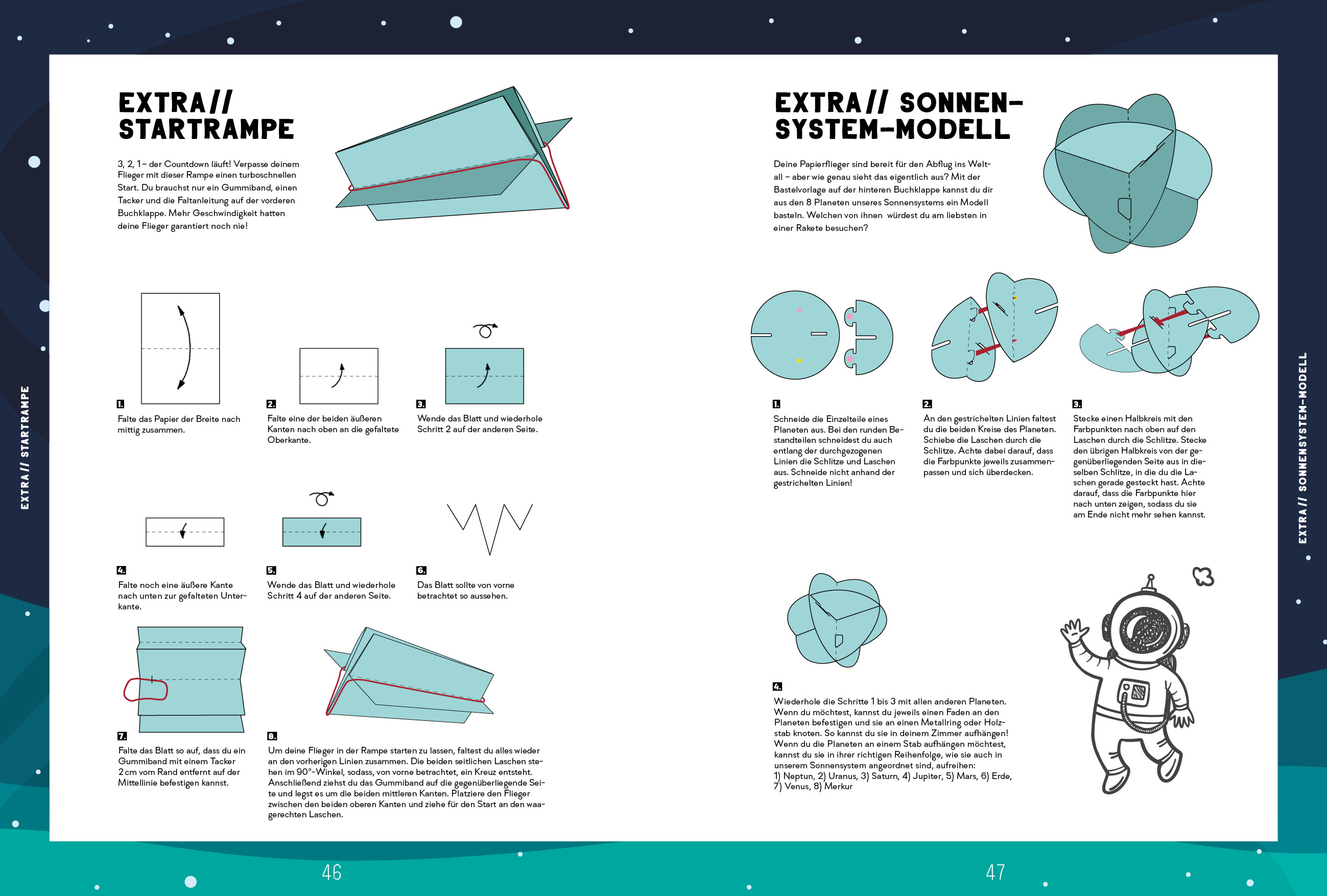 - Mit Extra-Anleitungen für eine Startrampe und ein Sonnensystem-Modell