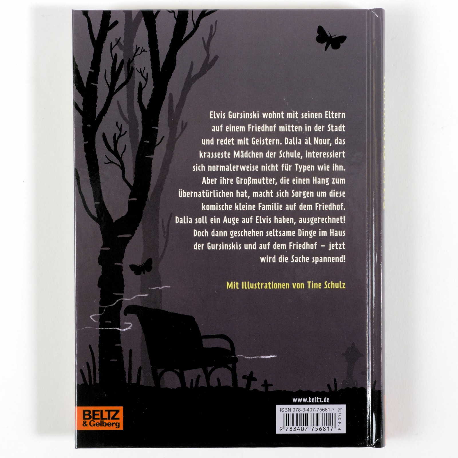 Elvis Gursinski trägt diesen absurden Namen, wohnt auf einem Friedhof und glaubt an Geister. Dalia al Nour, das krasseste Mädchen der Schule (ihre Nackenklatscher sind berüchtigt), interessiert sich normalerweise nicht für Typen wie ihn. Aber ihre Großmutter hat eine Schwäche fürs Übernatürliche und macht sich Sorgen um diese komische kleine Familie auf dem Friedhof. Dalia soll ein Auge auf Elvis haben, ausgerechnet. Doch dann geschehen seltsame Dinge im Haus der Gursinskis und (später) auf dem Friedhof ... Ein humorvoller Kinderroman mit Ausflügen ins Schauerliche.