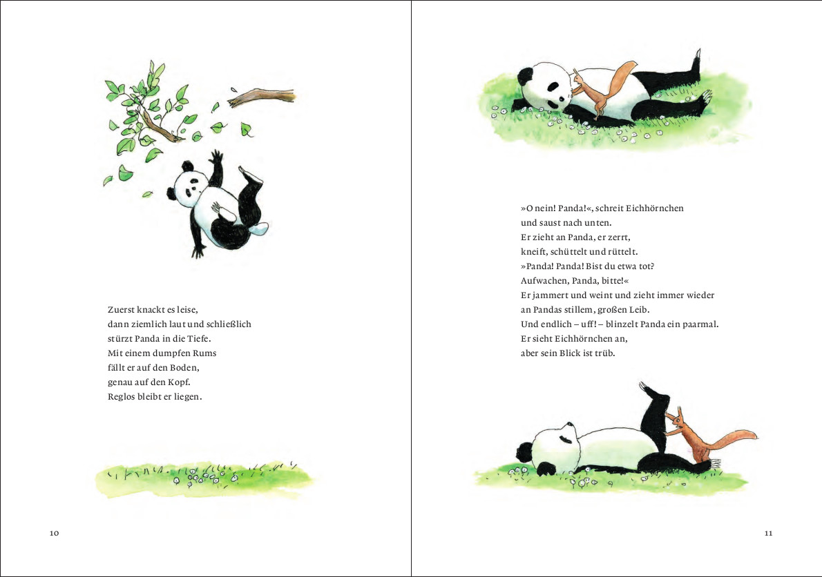Die Freundschaft von Panda und Eichhörnchen ist grenzenlos. Beide halten zusammen, auch wenn sie manchmal eigene Wege gehen. Denn als Panda wissen möchte, wohin die Sonne schlafen geht und wo sie nachts ihr Licht verbirgt, mag Eichhörnchen nicht mitkommen. Doch dann überfällt Panda auf seiner Reise ein Gefühl, von dem er nicht weiß, wie es heißt ...Ed Francks Geschichten handeln diesmal von Geheimnissen, die keine sind, vom sich gegenseitig Geschichtenerzählen, davon, was passieren kann, wenn jemand auf den Kopf fällt, oder von der Heldenhaftigkeit, als eine Schlange auftaucht. »Wenn's heute Nacht noch einmal gefährlich wird, können wir zusammen mutig sein.« Panda nickt. »Zwei Freunde, zwei Helden«, sagt er ...