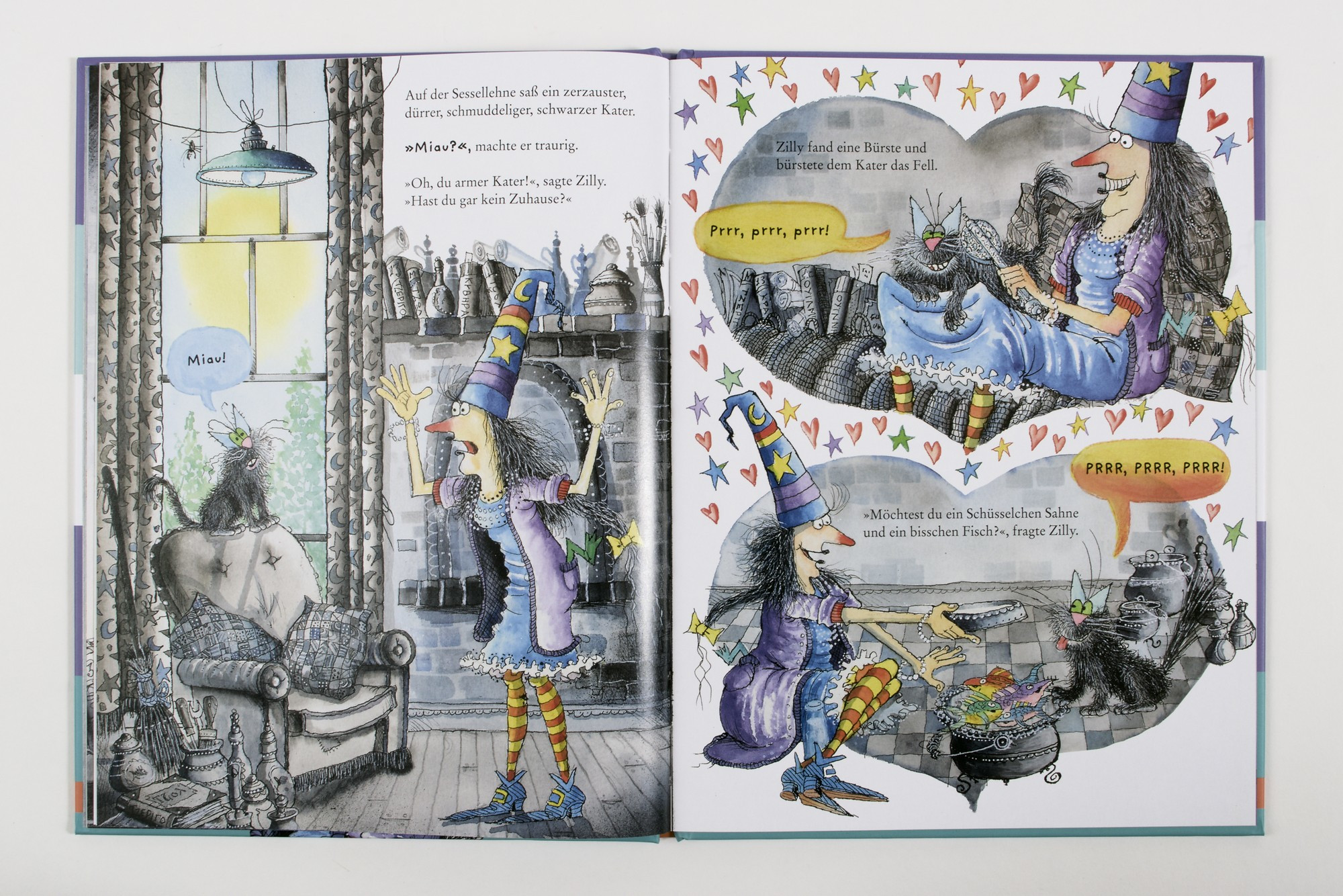 Soeben mit der Zauberschule fertig, zieht Zilly in ihr riesiges Haus am Wald. Schön ist es hier, aber einsam! Zillys Schwestern fliegen herbei, doch schon bald liegen sie sich in den Hexenhaaren. Und die ungewöhnlichen Haustiere bringen ebenso nichts als Ärger. Da stolpert Zilly eines Tages über einen kleinen, zerzausten, schwarzen Kater ...Zilly und Zingaro: Das sind turbulente Vorlesegeschichten rund um Zauberin Zilly und ihren Kater Zingaro. Große Wimmelbilder mit vielen witzigen Details begeistern Kinder ab 4 und auch Leseanfänger.