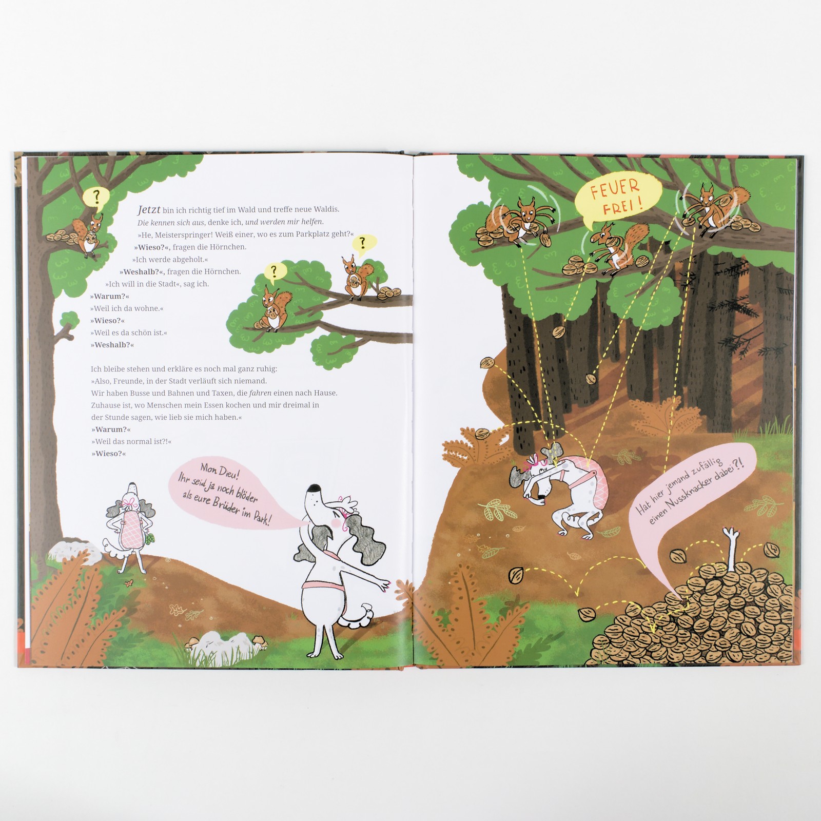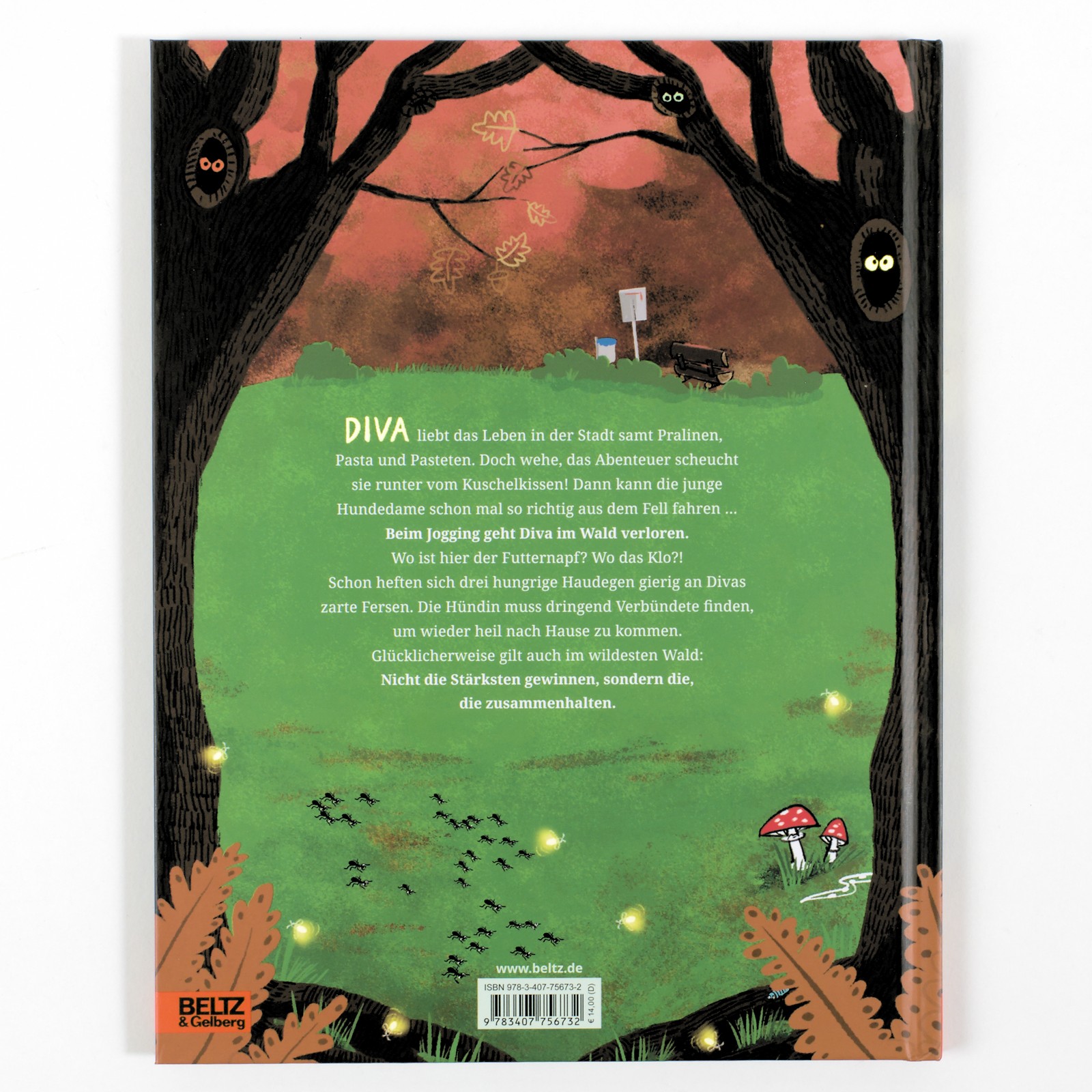 Diva liebt das Leben in der Stadt samt Pralinen, Pasta und Pasteten. Doch wehe, das Abenteuer scheucht sie runter vom Kuschelkissen! Dann kann die junge Hundedame schon mal so richtig aus dem Fell fahren ... Beim Jogging geht Diva im Wald verloren. Wo ist hier der Futternapf? Wo das Klo?! Schon heften sich drei hungrige Haudegen gierig an Divas zarte Fersen. Die Hündin muss dringend Verbündete finden, um wieder heil nach Hause zu kommen. Glücklicherweise gilt auch im wildesten Wald: Nicht die Stärksten gewinnen, sondern die, die zusammenhalten.