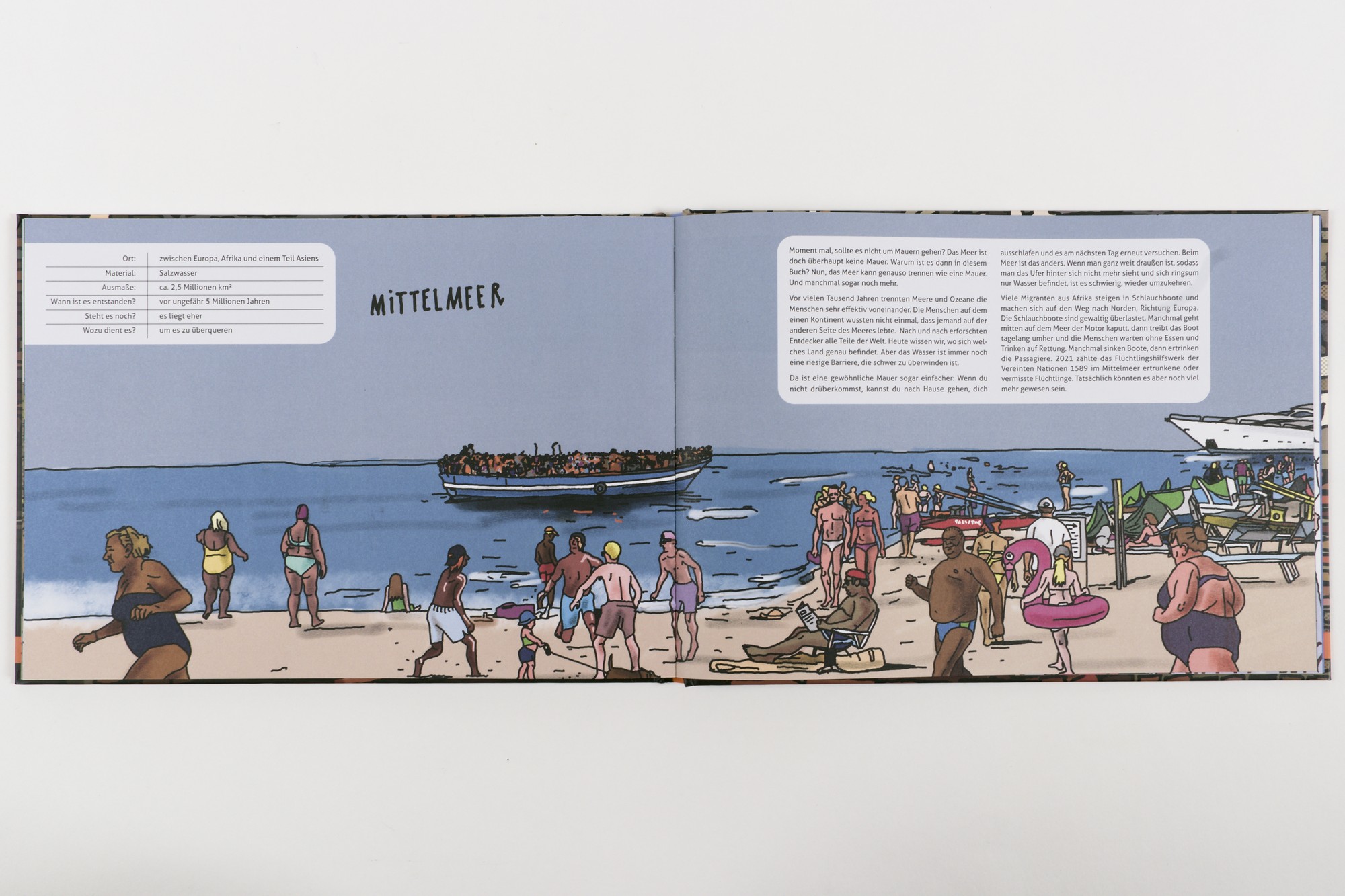 In Europa können wir reisen, wohin wir wollen. Durch das Internet sind wir mit Menschen aus aller Welt verbunden. Die Welt ist zusammengewachsen, Stadtmauern sind Denkmäler aus der Vergangenheit. Und doch: Mauern zu ziehen liegt voll im Trend. Nur trennen sie heute vor allem Reiche von Armen. Bekannte und unbekannte, historische und heutige Mauern, solche aus Stein, Stacheldraht oder symbolische Mauern sind hier versammelt. Neben kurzen Infokästen zu Bau, Höhe, Länge, Material und Zweck wird kurzweilig erklärt, warum Menschen sich von anderen abgrenzen. Mit Biss und Witz illustrativ zugespitzt.