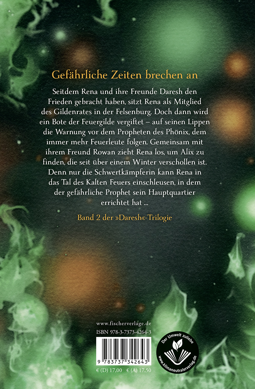 Seitdem Rena und ihre Freunde Daresh den Frieden gebracht haben, sitzt Rena als Mitglied des Gildenrates in der Felsenburg. Doch dann wird ein Bote der Feuergilde vergiftet - auf seinen Lippen die Warnung vor dem Propheten des Phönix. Gemeinsam mit ihrem Freund Rowan zieht Rena los, um Alix zu finden. Denn nur sie kann Rena in das Tal des Kalten Feuers einschleusen ...