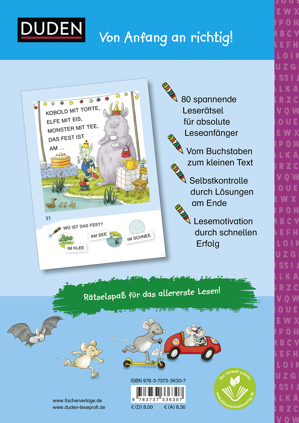| Schlagworte | Beschäftigung • Beschäftigungsbuch • Duden Leseprofi • Einschulung • erster Lesewortschatz • Erstleser Jungen Mädchen • Geschenk Schulanfang • Homeschooling • Kinderbeschäftigung • Kinderbücher • Knobelspaß • Lernspaß • Leseanfänger • Lesebuch Junge Mädchen • Leselöwe • Lesemaus • Lesen lernen • Lesen lernen Vorschule • Leserabe • Lies mal • Rätselspaß • Schulstart • Schultüte • Spielerisch lernen • Zuhause lernen |