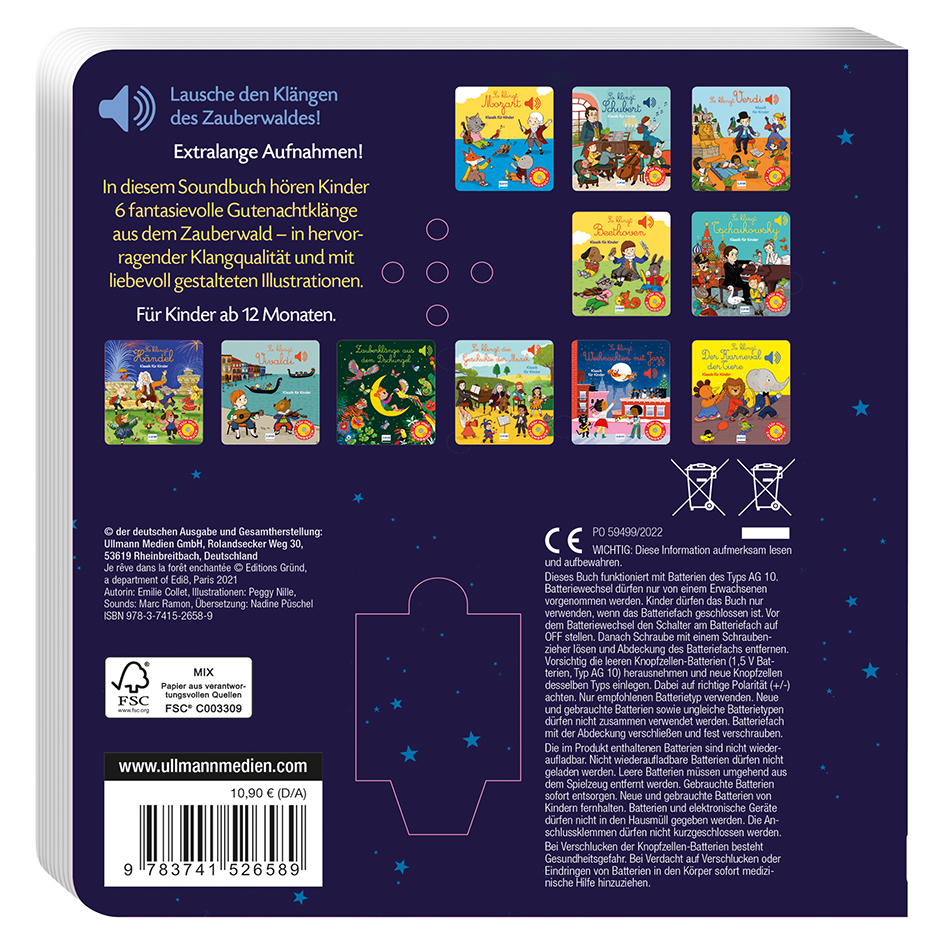 Es ist Zeit, ins Bett zu gehen. Wie wäre es, wenn du mit den Klängen aus dem Zauberwald einschläfst? Schaue dir die Bilder an und drücke auf den Soundbutton - schon erklingen traumhafte Geräusche und Töne. Die Vögel zwitschern und die Glühwürmchen schweben durch die Nacht. In diesem einzigartigen Buch werden Kinder anhand der fantasievollen Bilder und Klänge in eine sanfte und ruhige Stimmung versetzt. Ideal zur Entspannung und für das Gutenacht- und Einschlafritual.