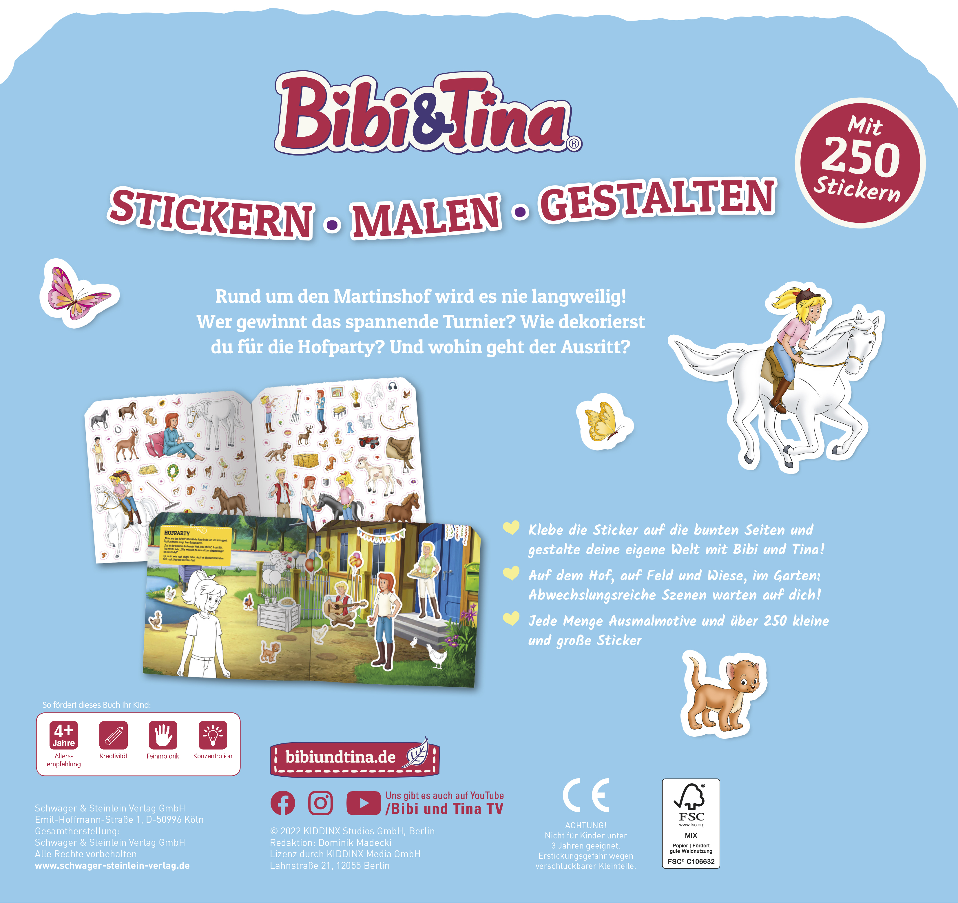Klebe die Sticker auf die bunten Seiten und gestalte deine eigene Welt mit Bibi & Tina. Auf dem Hof, auf Feld und Wiese, im Garten hier warten 31 abwechslungsreiche Szenen auf dich. Sie bieten jede Menge Platz zum kreativen Gestalten. Male die Ausmalmotive bunt aus, zeichne weitere Figuren, Pflanzen oder Tiere in die Hintergründe oder beklebe die Szenen mit den über 250 kleinen und großen Stickern. Die farbenfrohen Seiten bieten viel Platz zum freien Gestalten und erlauben es den Martinshof-Fans, sich kreativ auszutoben.
