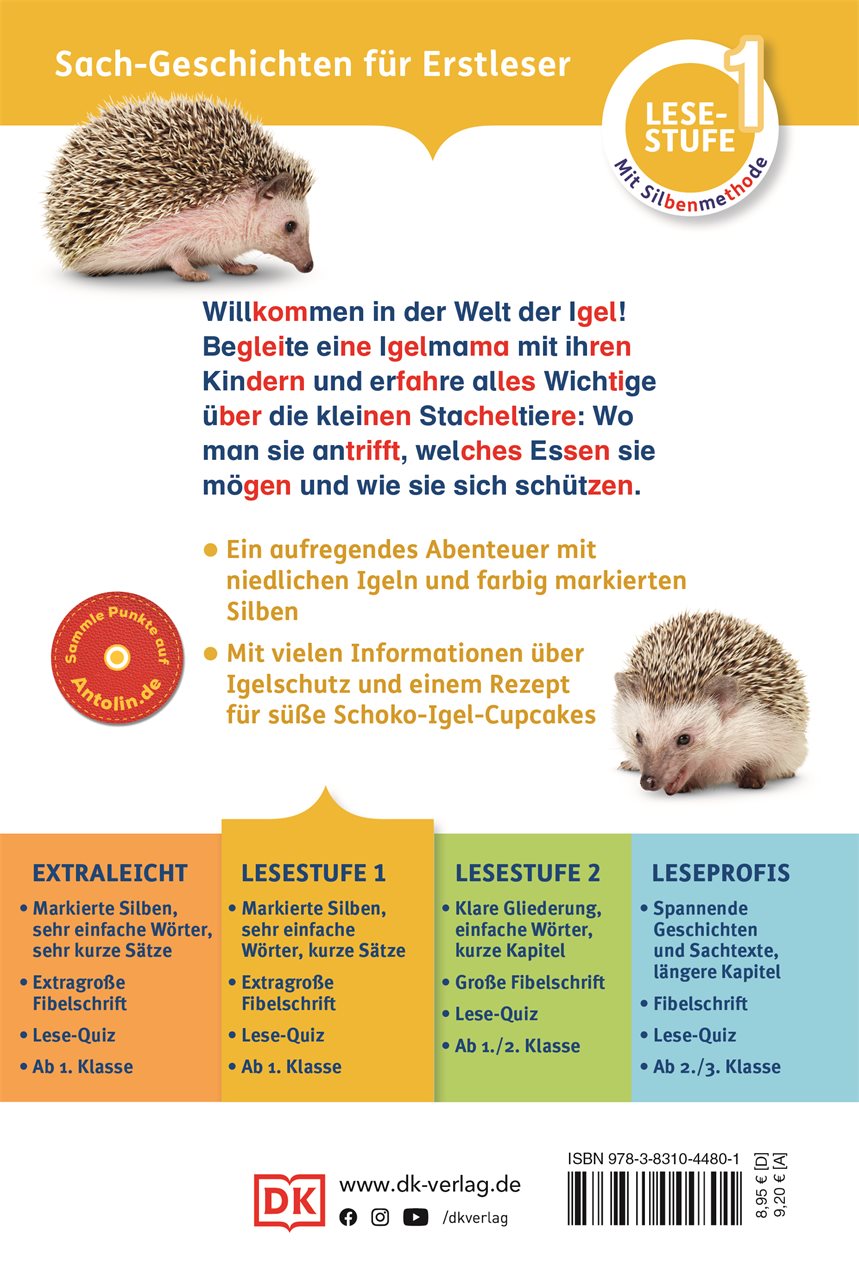 Dieses Erstlesebuch über die Welt der Igel eignet sich mit kurzen Sätzen, einfacher Sprache und extra großer Fibelschrift perfekt zur Leseförderung. Farbig markierte Silben, ein praktisches Lesebändchen und ein übersichtliches Glossar zum Nachschlagen der Wörter erleichtern das Lesenlernen und mit dem Mix aus fesselnder Erzählung und spannendem Sachwissen zu den stacheligen Waldbewohnern, kniffligem Quiz und einem Rezept für Schoko-Igel-Cupcakes macht Lesen üben gleich dreimal so viel Spaß!