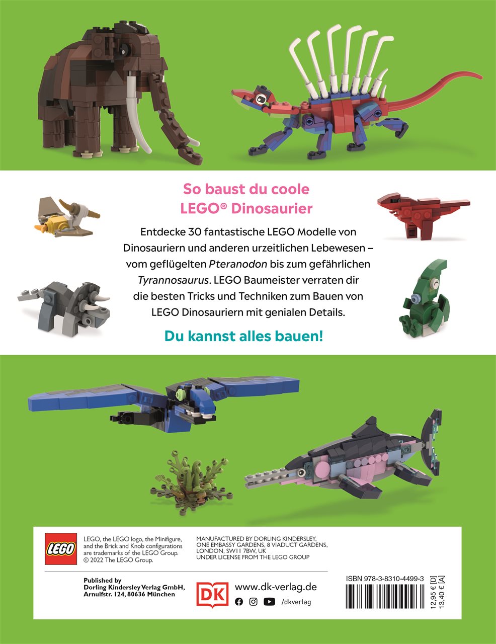Mit diesem LEGO® Buch bauen sich Kinder ab 6 Jahren ihre Lieblingsdinos aus LEGO® Steinen. In einfachen und klar bebilderten Anleitungen entstehen über 30 fantastische Dino-Modelle vom wilden Tyrannosaurus rex über einen riesigen Brachiosaurus bis hin zum geflügelten Pteranodon. Mit den cleveren Tipps und Tricks von LEGO® Baumeistern erfahren die Dino-Fans, wie sie ganz leicht gefährlich aussehende Klauen gestalten oder mit Farben und Strukturen die besonders beeindruckende LEGO® Dinosaurier bauen können.