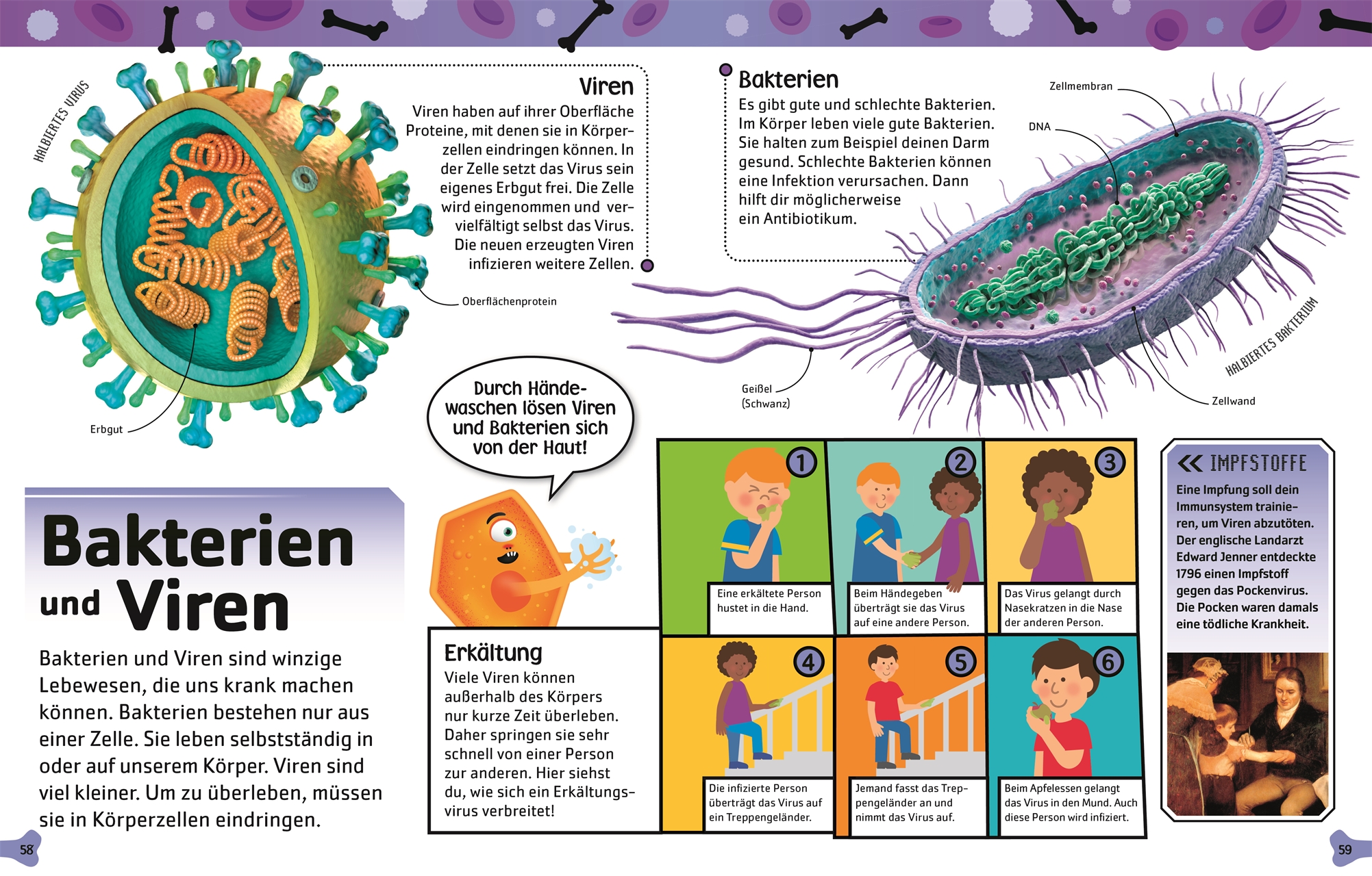 Buch auf und abtauchen ins Abenteuer Körper! Hier erklären Bakterien, Viren und Zellen neugierigen Grundschulkindern ab 7 Jahren, was im Körper vor sich geht informativ, anschaulich und witzig.