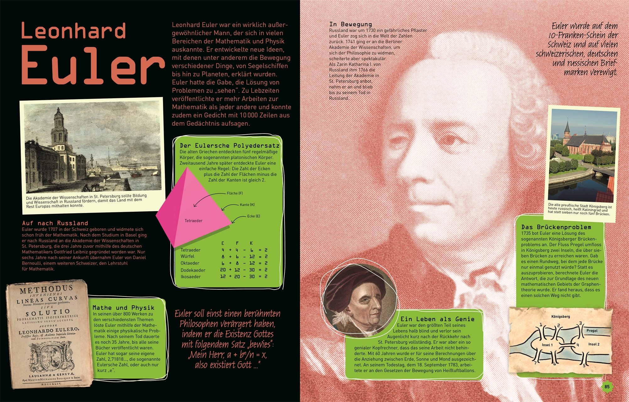 Extra-Seiten über berühmte Mathematiker: von Pythagoras und Archimedes über Carl Friedrich Gauß und Leonhard Euler bis hin zu Isaac Newton