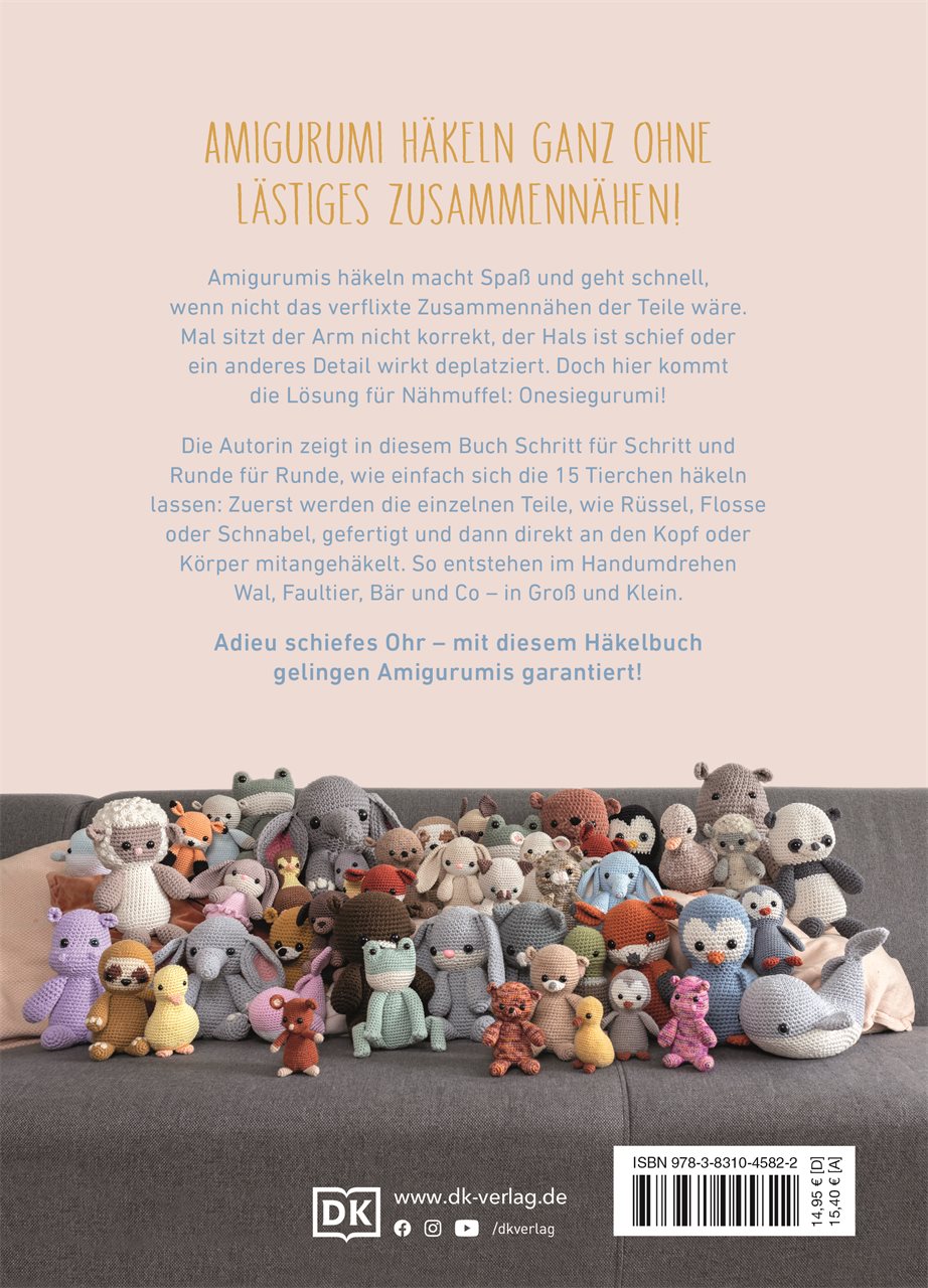 Wer Tiere häkelt, kennt die süßen Amigurumi-Figuren aber kennen Sie schon Onesiegurumi? Onesigurumi ist niedlicher Häkelspaß ganz ohne Zusammennähen und auch für Anfänger*innen geeignet! Bei diesen Amigurumi werden die Teile an den Körper angehäkelt statt diese nachträglich anzunähen. 15 Kuscheltiere zum Häkeln wie Wal, Pinguin, Fuchs oder Bär warten nur darauf, zum Leben erweckt zu werden. Das Häkelbuch für Amigurumi ganz ohne Nähen!