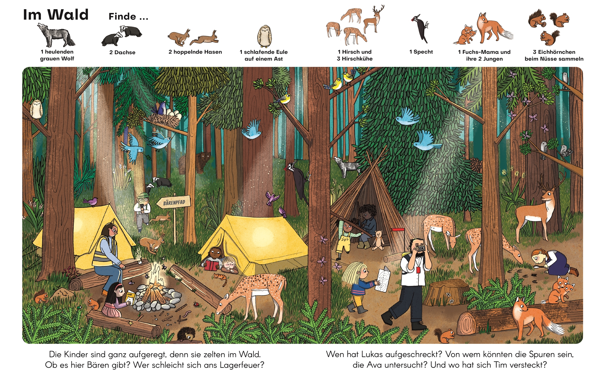 Einmal mit dem Strauß um die Wette rennen, mit Walen im Meer tauchen oder auf dem Bauernhof im Heu toben! Liebevoll gestaltete Suchbilder in diesem handlichen Wimmelbuch schicken Kinder ab 2 Jahren auf eine Reise durch tolle Naturlandschaften. Dabei gibt es einiges zu entdecken: Kurze Texte beschreiben die Szenen und die Kinder dürfen ein bestimmtes Tier finden, die Suchbilder erkunden und wunderbare Geschichten darüber erzählen. Und wo steckt eigentlich Teddy Tim?