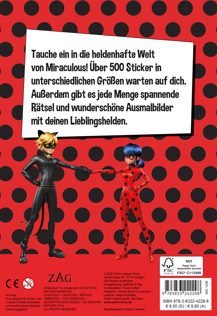 Tauche ein in die heldenhafte Welt von Miraculous! Über 500 Sticker in unterschiedlichen Größen warten auf dich! Außerdem gibt es jede Menge spannende Rätsel und wunderschöne Ausmalbilder mit deinen Lieblingshelden!