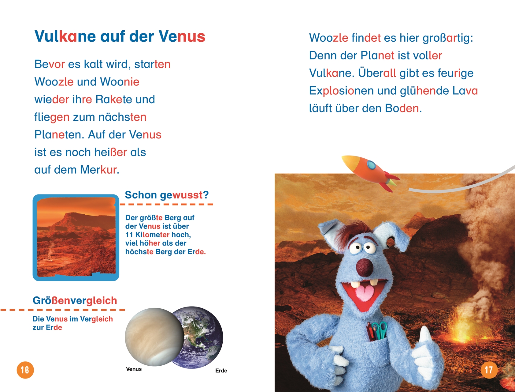 Unendliche Weiten, wir kommen! In diesem SUPERLESER!-Erstlesebuch geht es für Woozle Goozle und seine Nichte Woonie ins Weltall. Woonie muss für die Schule die Planeten lernen und deshalb baut Woozle Goozle eine Rakete, um Venus, Mars, Saturn und Co. gleich aus der Nähe zu betrachten. Eine coole Abenteuergeschichte zum Lesen lernen, dank sehr klarer Gliederung, besonders einfacher Sprache und vielen Fotos perfekt für Leseanfänger*innen.