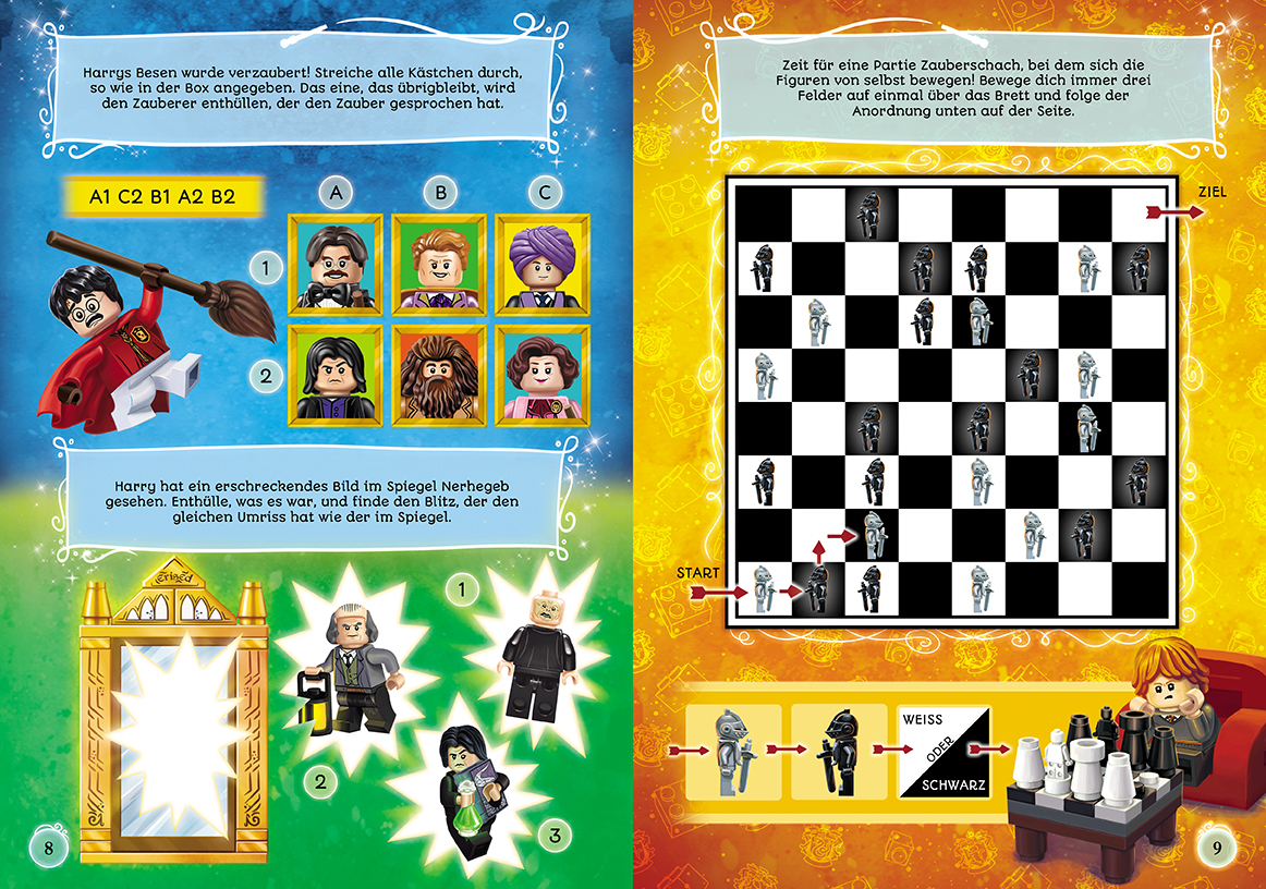 Rätselspaß mit Harry und Co.- mit LEGO® Minifigur "Ron Weasley(TM)"LEGO® Harry Potter(TM) Fans dürfen sich über neuen Rätselspaß mit ihren Helden Harry, Ron und Hermine freuen!Zahlreiche spannende Rätsel erwarten sie in und außerhalb von Hogwarts(TM). Nur gemeinsam können sie sich den magischen Herausforderungen stellen und die Aufgaben meistern. Detailreiche von Hand illustrierte Szenen, die an die beliebten Harry-Potter-Filme angelehnt sind, tragen dazu bei, dass die Zaubererwelt in den Köpfen der jungen Fans lebendig wird. Nach dem Rätseln können die Szenen mit der coolen Minifigur "Ron Weasley(TM)" nachgespielt werden. Neben dem Rätselspaß kommt auch hier der Spielspaß nicht zu kurz. Kinder ab 6 Jahren werden von diesem Buch begeistert sein!LEGO, the LEGO logo, the Brick and Knob configurations and the Minifigure are trademarks of the LEGO Group. ©2022 The LEGO Group.WIZARDING WORLD characters, names, and related indicia are © & (TM) Warner Bros. Entertainment Inc. WB SHIELD: © & (TM) WBEI. Publishing Rights © JKR. (s22).