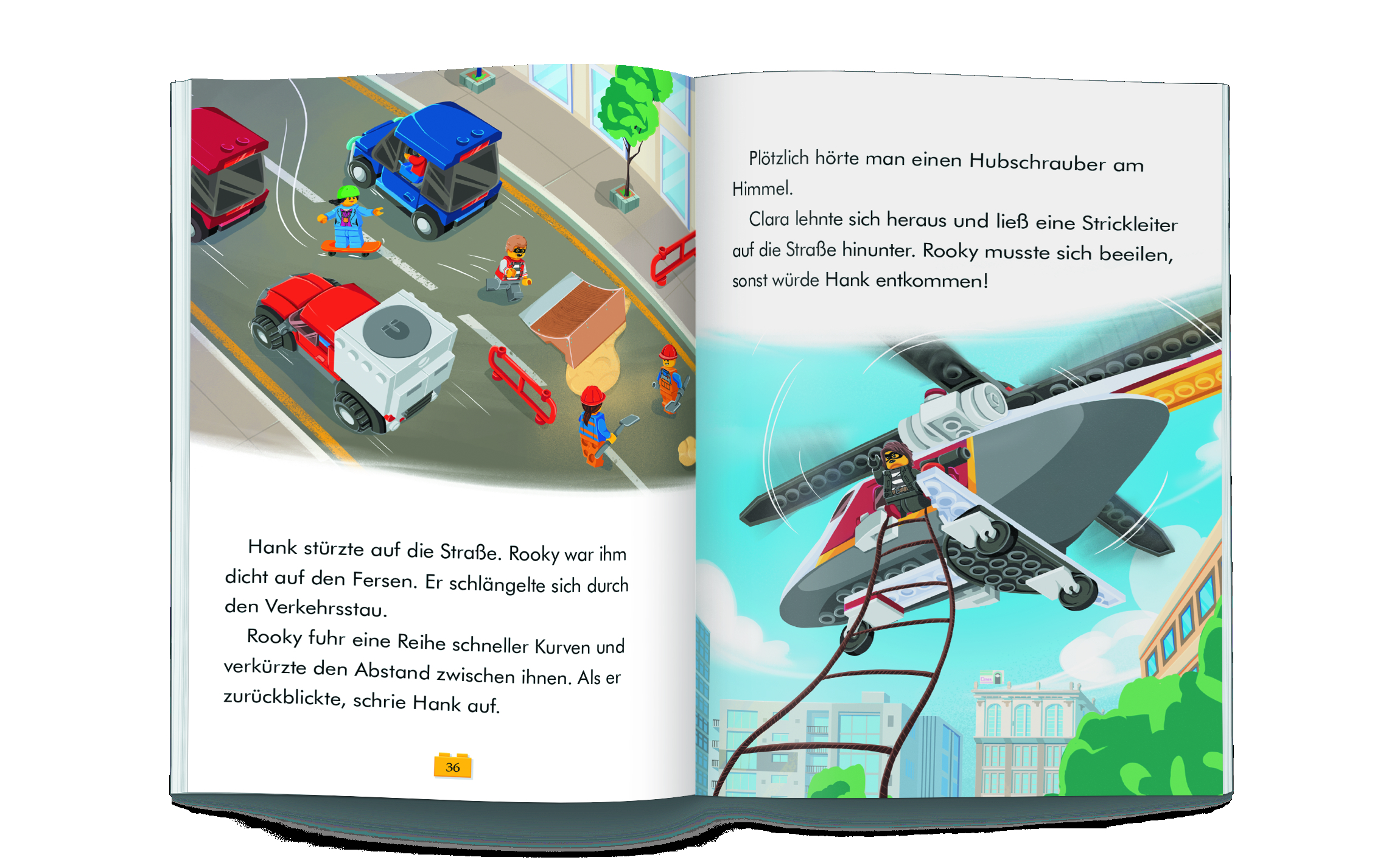 | Schlagworte | Abenteuer • Bildergeschichte • City • Einsatz • Erstleser • Feuerwehr • Geschichte • Geschwindigkeit • Handwerker • Kinder • LEGO • Leseanfänger • Lesebuch • lustig • Rathaus • Rollen • Skateboard • Stadthelden |