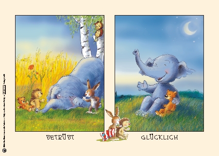 | Zusatzinfo | Auf jeder Kamishibai-Bilderbuchkarte sind jeweils gegensätzliche Gefühle in Szene gesetzt. |