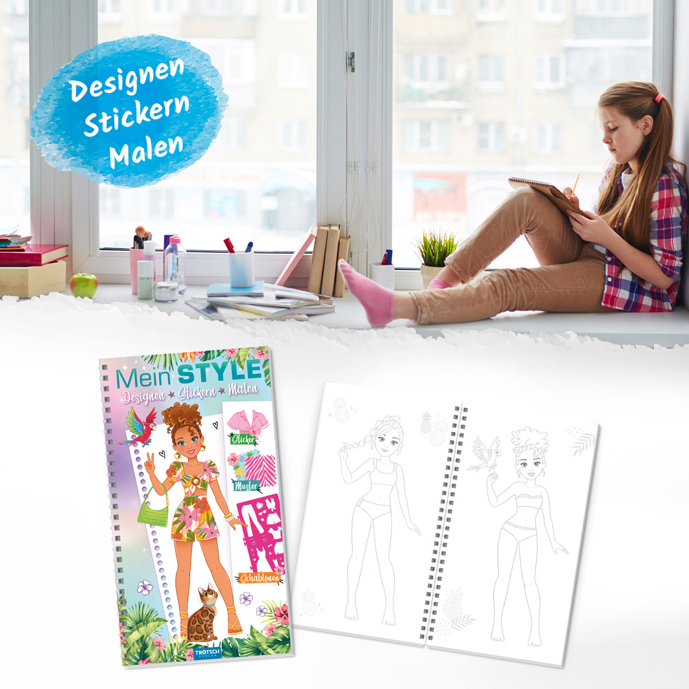 Trötsch Malbuch mit Schablonen und Stickern Mein Style Holiday
