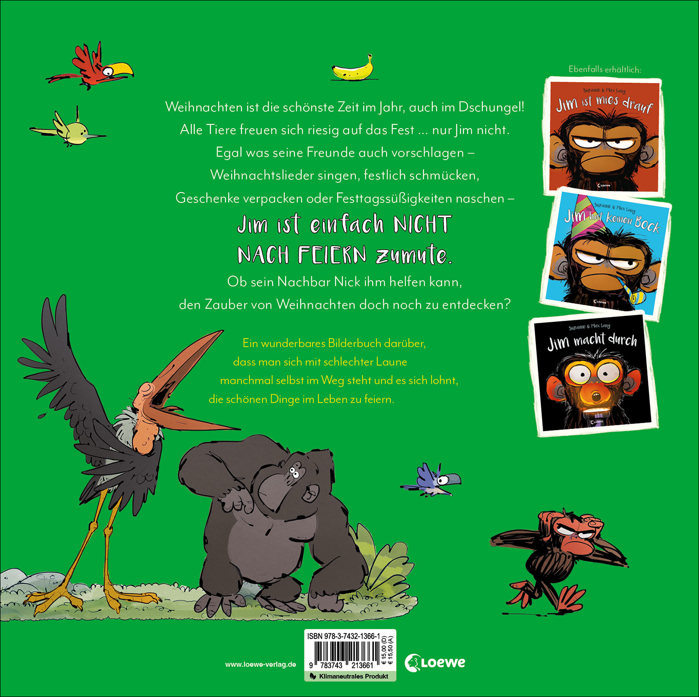 "Der neueste Band der Bilderbuchreihe mit dem grummeligen Affen Jim fördert die emotionale Entwicklung und beschreibt anhand farbenfroher Illustrationen, wie wichtig Freundschaft und Familie sind." Das Spielzeug "Das Bilderbuch über schlechte Laune in der Weihnachtszeit zeigt, warum es sich lohnt, die schönen Dinge im Leben zu feiern." Eltern family "Eine tolle Geschichte, die Kinder ab 4 Jahren bestimmt lieben werden und auch den letzten Weihnachtsmuffel garantiert in Stimmung bringen." Hannover Kids "Fans des kleinen Affen werden ihr Herz auch dieses Mal wieder an Jim verlieren. Sehr humorvoll und süß wird diese Geschichte von Autorin Suzanne Lang zu Leben erweckt." Hörnchens Büchernest "Dieses herzliche Buch zeigt, wie wichtig es ist nicht nur Freunde zu haben, sondern auch mal auszusteigen aus all dem Trott und die eigene Sicht zu hinterfragen." familieerfurt, 01.12.2022 "Ein tolles Buch in dem sich jedes kleine und große Äffchen wiederfindet. Tatsächlich nicht nur zu Weihnachten ein Highlight, sondern über das ganze Jahr hinweg. Ein Buch, das in keinem Kinderzimmer fehlen darf." lese_sessel, 28.12.2022