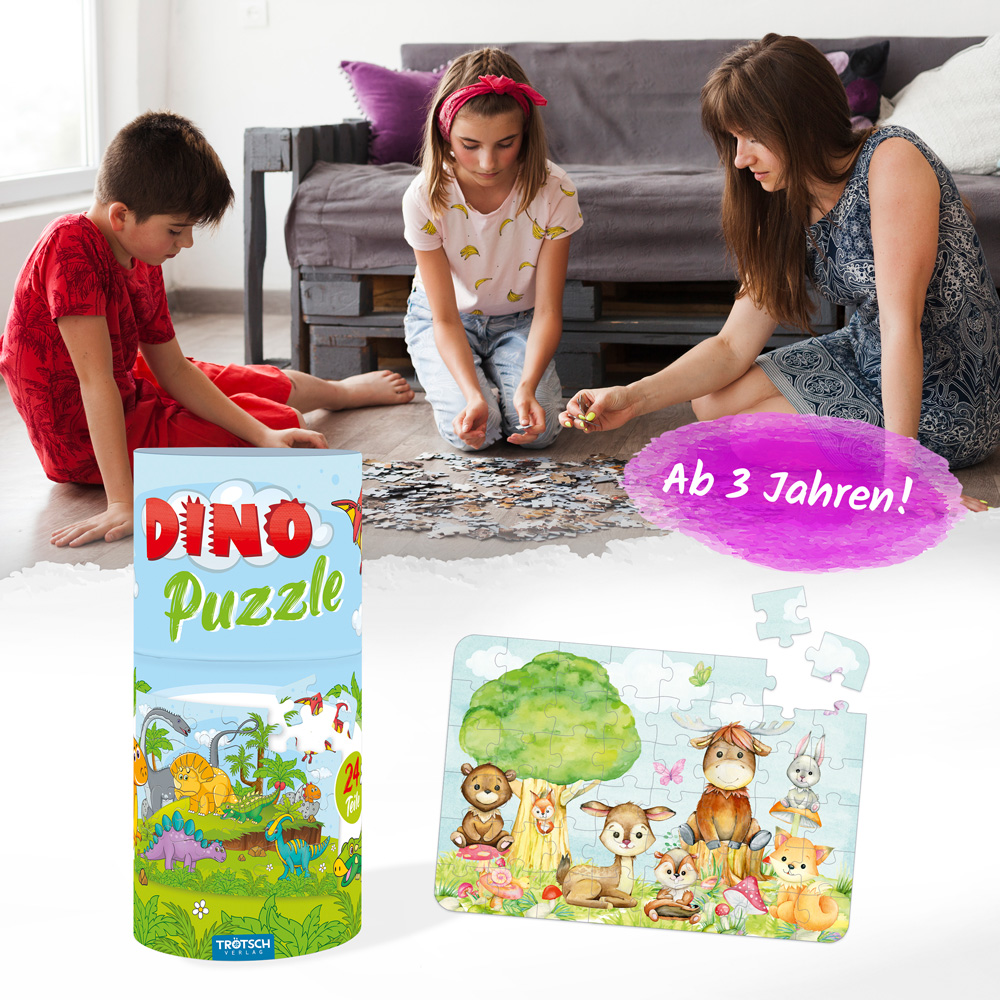Dinostarker Puzzlespaß aus der Tube mit 24 Teilen für Kinder ab 3 Jahren.