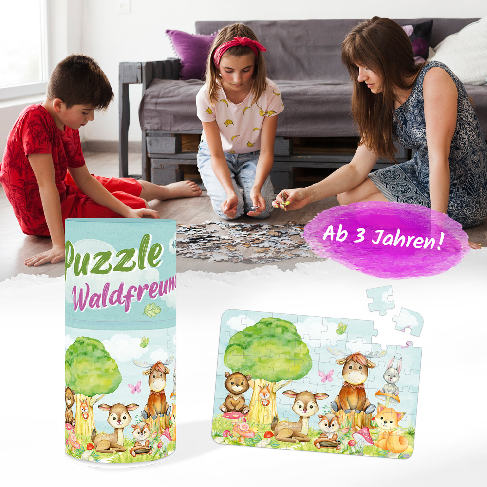 Tierisch niedlicher Puzzlespaß aus der Tube mit 24 Teilen für Kinder ab 3 Jahren.