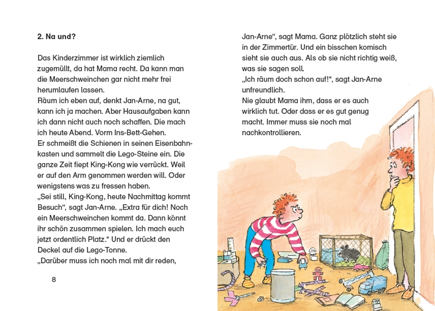 lt;p>Jan-Arne kriegt Besuch. Von Liane. Die hat er letzten Sommer an der Ostsee kennen gelernt, als er King-Kong, sein Meerschweinchen-Weibchen, verstecken musste. Meerschweinchen waren auf dem Campingplatz nämlich nicht erlaubt. Jetzt hat Liane selbst ein Meerschweinchen. Das heißt Mucki und ist ein Männchen. Natürlich dürfen sie die beiden nicht zusammenlassen. Sonst kriegt King-Kong nachher Junge. Und ein Meerschweinchen in der kleinen Wohnung ist wirklich genug!