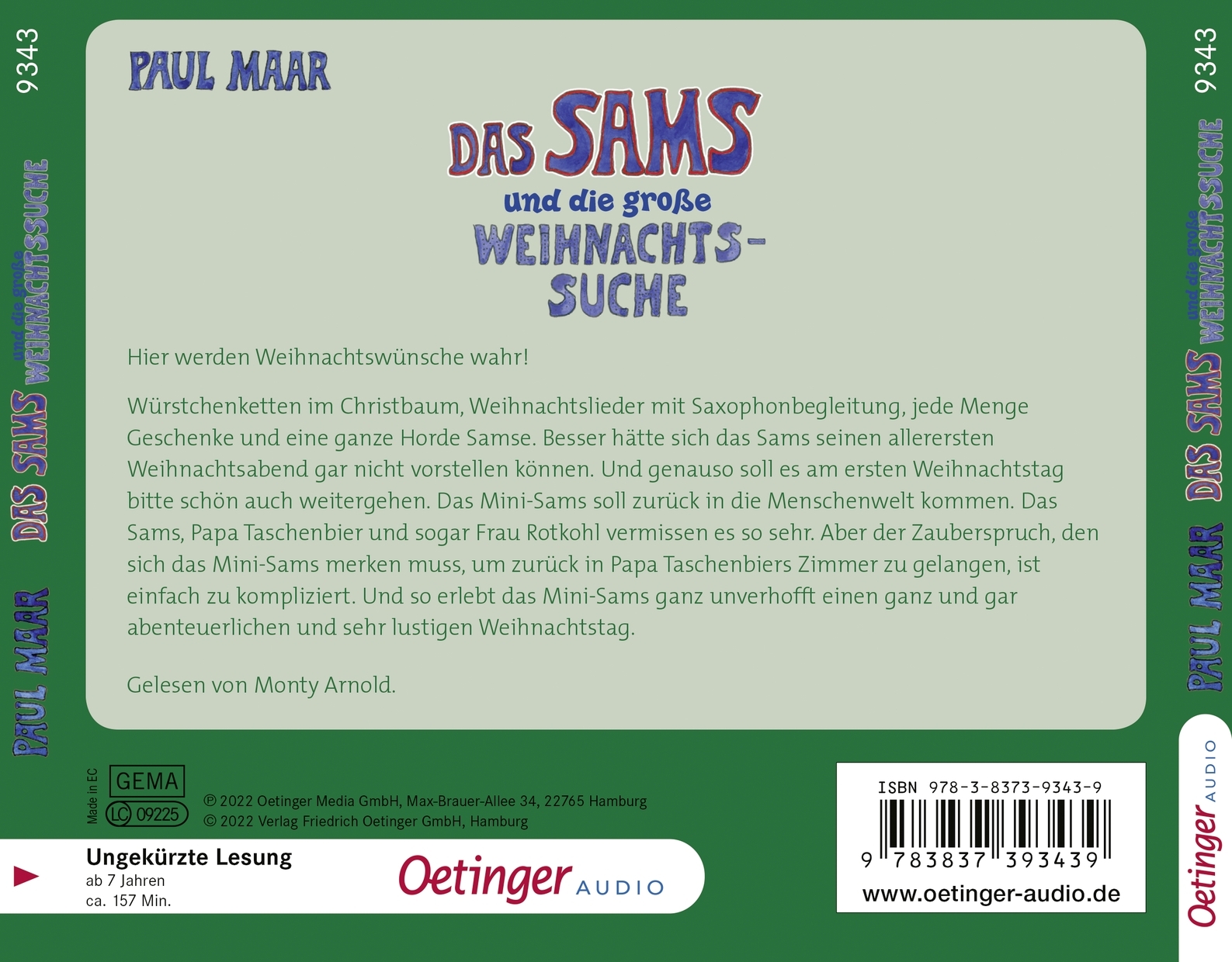 lt;p>Würstchenketten im Christbaum, Weihnachtslieder mit Saxophonbegleitung, jede Menge Geschenke und eine ganze Horde Samse. Besser hätte sich das Sams seinen allerersten Weihnachtsabend gar nicht vorstellen können. Und genauso soll es am ersten Weihnachtstag bitte schön auch weitergehen. Das Mini-Sams soll zurück in die Menschenwelt kommen. Das Sams, Papa Taschenbier und sogar Frau Rotkohl vermissen es so sehr. Aber der Zauberspruch, den sich das Mini-Sams merken muss, um zurück in Papa Taschenbiers Zimmer zu gelangen, ist einfach zu kompliziert. Und so erlebt das Mini-Sams ganz unverhofft einen ganz und gar abenteuerlichen und sehr lustigen Weihnachtstag.