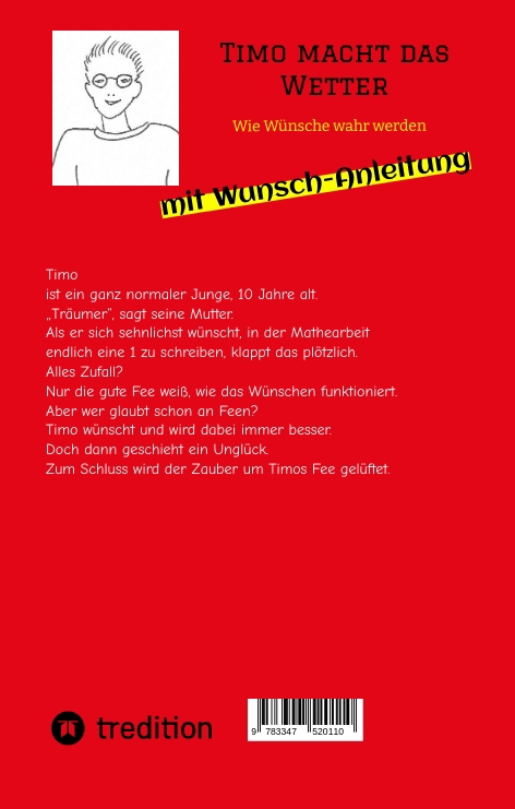 Timo ist ein ganz normaler Junge, 10 Jahre alt. "Träumer", sagt seine Mutter. Als er sich sehnlichst wünscht, eine 1 in der Mathearbeit zu schreiben, klappt das plötzlich. Nur seine gute Fee kann Timo erklären, wie das Wünschen funktioniert. Ab sofort probiert Timo es immer wieder. Aber wer glaubt schon an Feen? Nachdem Timo versucht hat, seinen Mitschülern das Wünschen zu erklären, geschieht ein Unglück. Zum Schluss wird der Zauber um Timos Fee gelüftet.