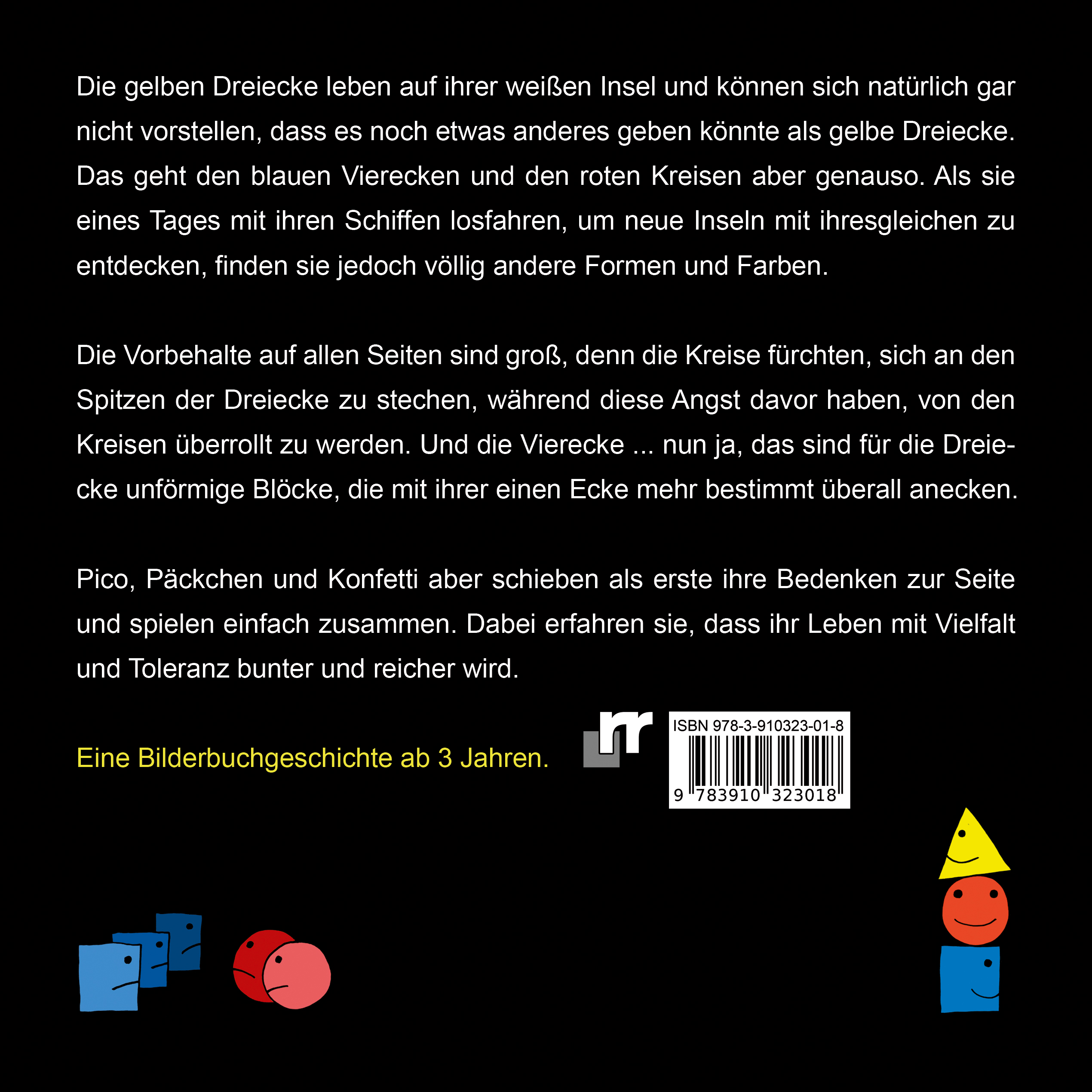 Pico, Päckchen und Konfetti aber schieben als erste ihre Bedenken zur Seite und spielen einfach zusammen. Dabei erfahren sie, dass ihr Leben mit Vielfalt und Toleranz bunter und reicher wird.