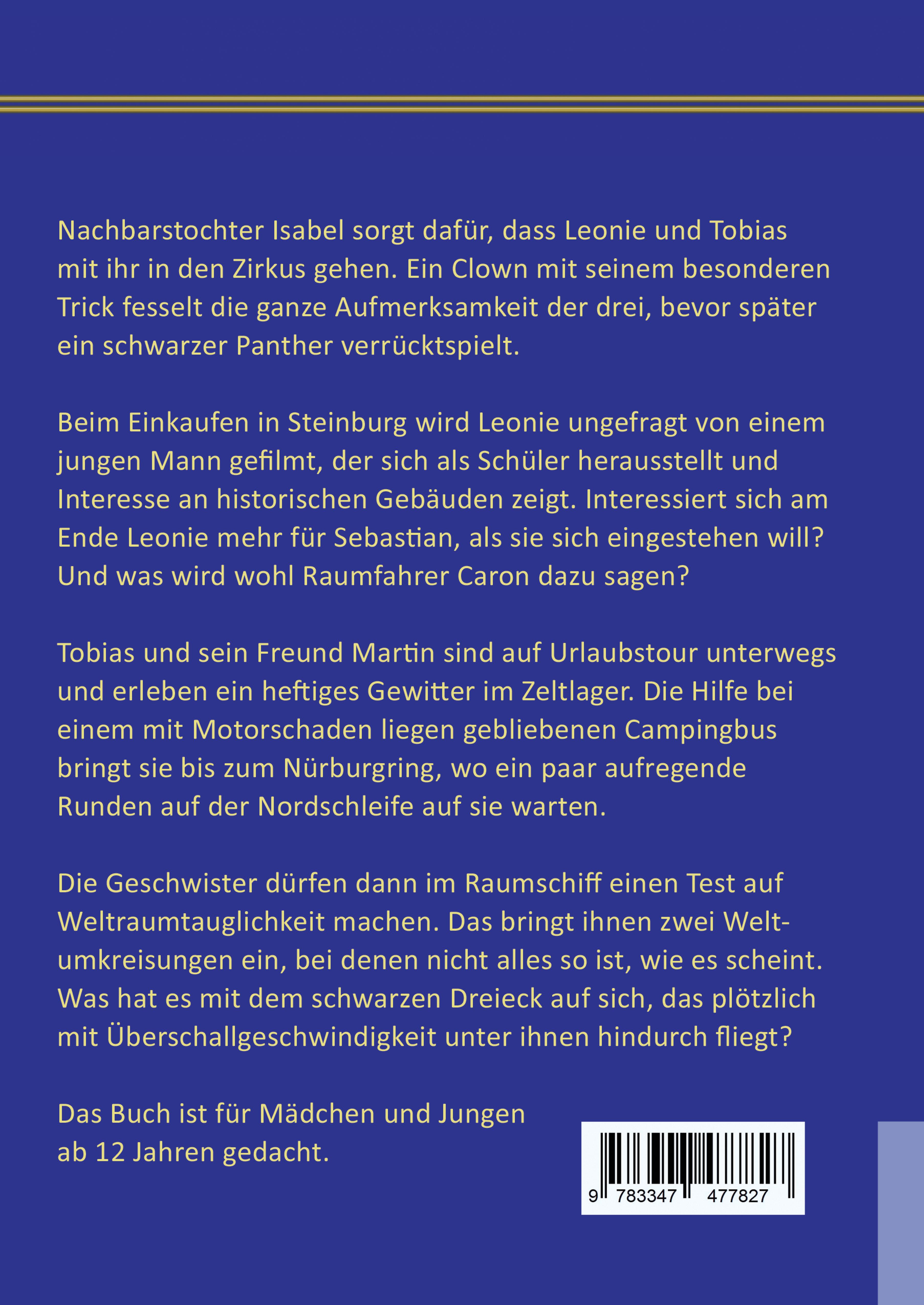 Die Abenteuer der 15-jährigen Leonie und ihres Bruders Tobias gehen weiter und bringen sie und viele andere Menschen im Zirkus bei einer Raubtierdressur in Gefahr. Später lernt Leonie in ihrem Heimatort den geheimnisvollen Sebastian kennen. Für Tobias und seinen Freund Martin wird es im Zeltlager gefährlich, als plötzlich ein nächtliches Gewitter tobt. Ein paar Runden auf der Nordschleife des Nürburgrings bringen Abwechslung in den Urlaub. Am Ende dürfen Leonie und Tobias einen Test auf Weltraumtauglichkeit im Raumschiff Diskus-Dom machen.