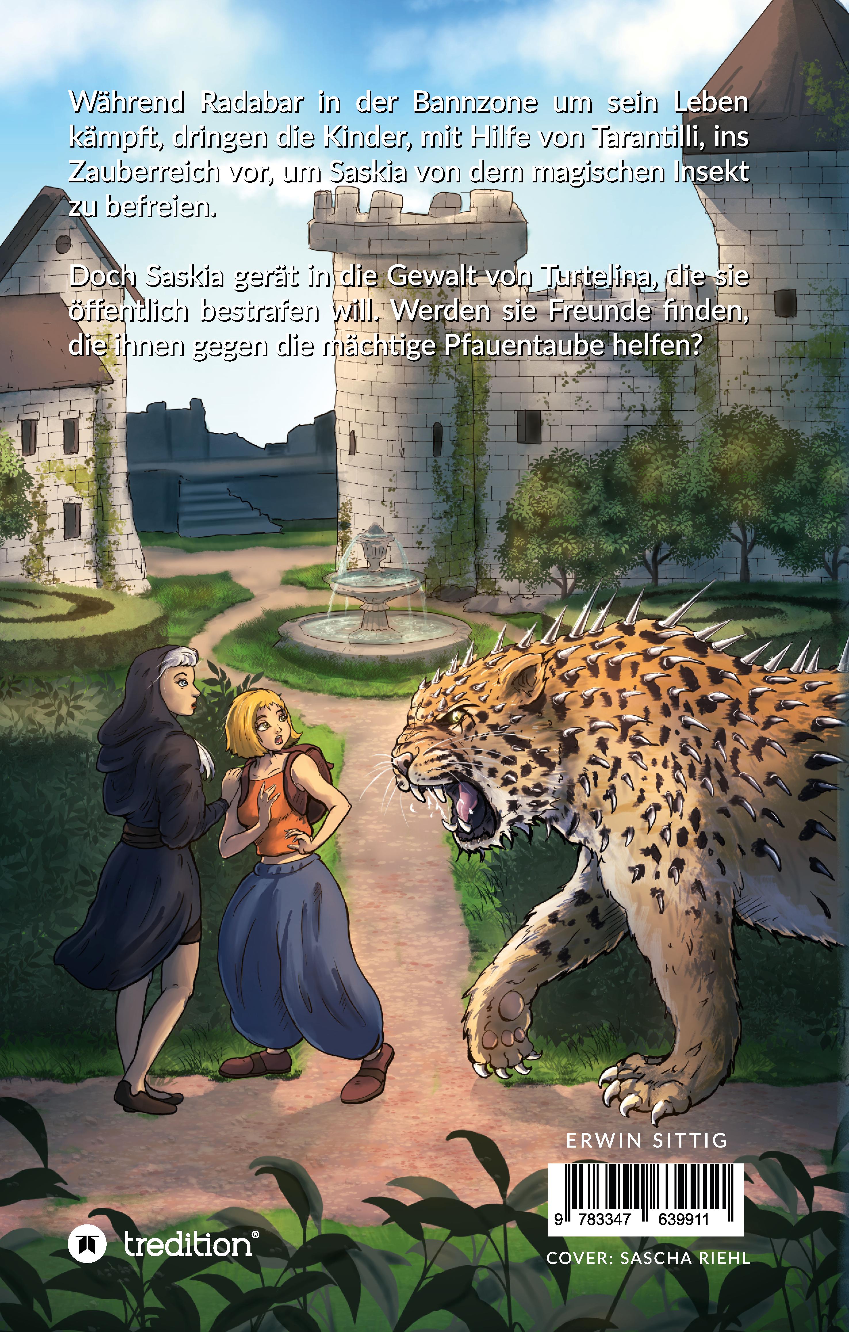 Im vorherigen Teil wurde Radabar wegen einiger Vergehen in die Bannzone eingewiesen, eine Art Gefängnis in der Wildnis. Kein Zauberer ist ihr jemals entkommen.Claudia, Radabars fliegende Katze, hält Kontakt zu ihm. Sie hofft, dass er wegen guter Führung frühzeitig entlassen wird. Doch der Traum zerplatzt, da jeder Insasse der Bannzone darum kämpft, seine Macht auszubauen. Dabei machen Sie nicht davor Halt die unterlegenen Zauberer zu verstümmeln oder gar zu vernichten. Auch Radabars ärgster Feind, Ratturius, sucht nach ihm, während er selbst versucht, seinen Freund Punto zu finden, der zur Sicherheitsgarde der gefürchteten Zauberin Amphida gehört. Währenddessen will sich Turtelina, die bösartige Pfauentaube, immer noch an Saskia rächen, der sie fälschlicherweise vorwirft, ihr Schloss in Brand gesteckt zu haben. Sie lockt die Kinder in das Zauberreich und nimmt das Mädchen gefangen. Ihre Freunde Mark, Claas, Chris, Hektulus und Tarantilli versuchen, sie zu befreien und müssen große Gefahren bestehen. Werden sie auch für Radabar etwas tun können?