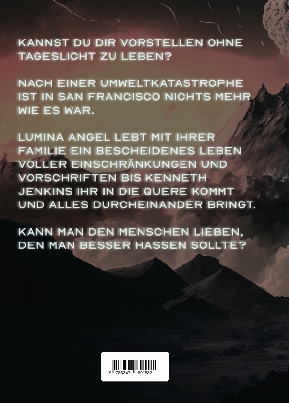 Kannst du dir vorstellen ohne Tageslicht zu leben?Nach einer Umweltkatastrophe ist in San Francisco nichts mehr wie es war. Lumina Angel lebt mit ihrer Familie ein bescheidenes Leben voller Einschränkungen und Vorschriften bis Kenneth Jenkins ihr in die Quere kommt und alles durcheinander bringt. Dabei werden ihr bisher verwehrte Geheimnisse aufgedeckt und Lumina steht vor einer schwierigen Entscheidung. Kann man den Menschen lieben, den man besser hassen sollte?